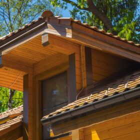 — с одной стороны, отсутствие на фасаде водосточных труб существенно влияет на архитектурную ценность строения, но с другого – они необходимы, и должны располагаться по внешним углам дома, если дом из дерева – крайне важно не допустить попадание лишней влаги на стены.