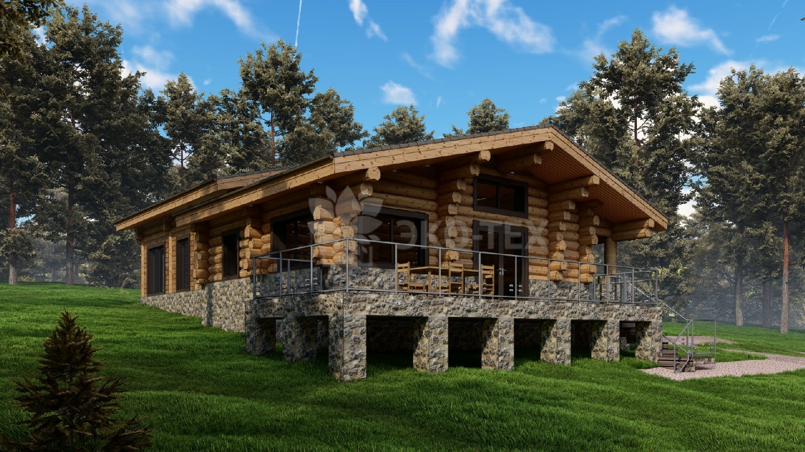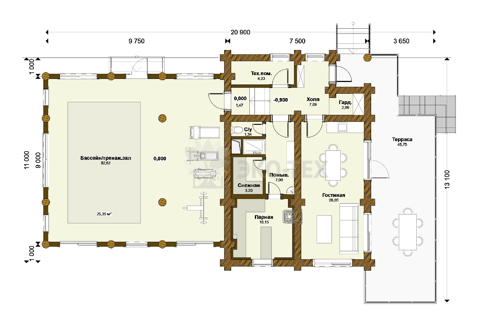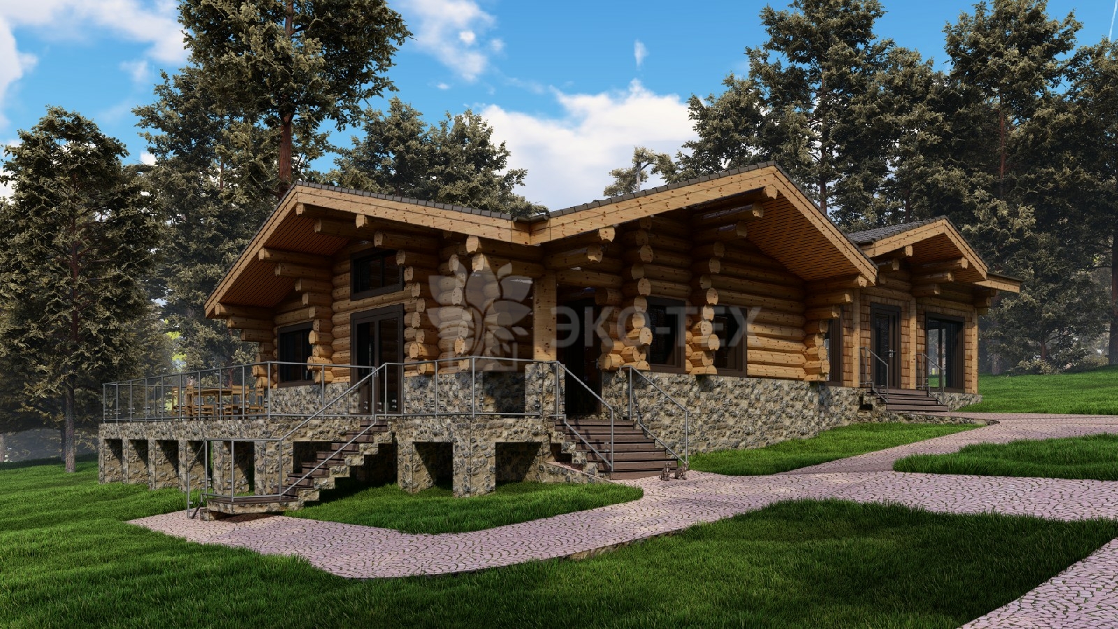 Большой банный комплекс с бассейном, террасой, спа зоной Ø бревна 32-36см