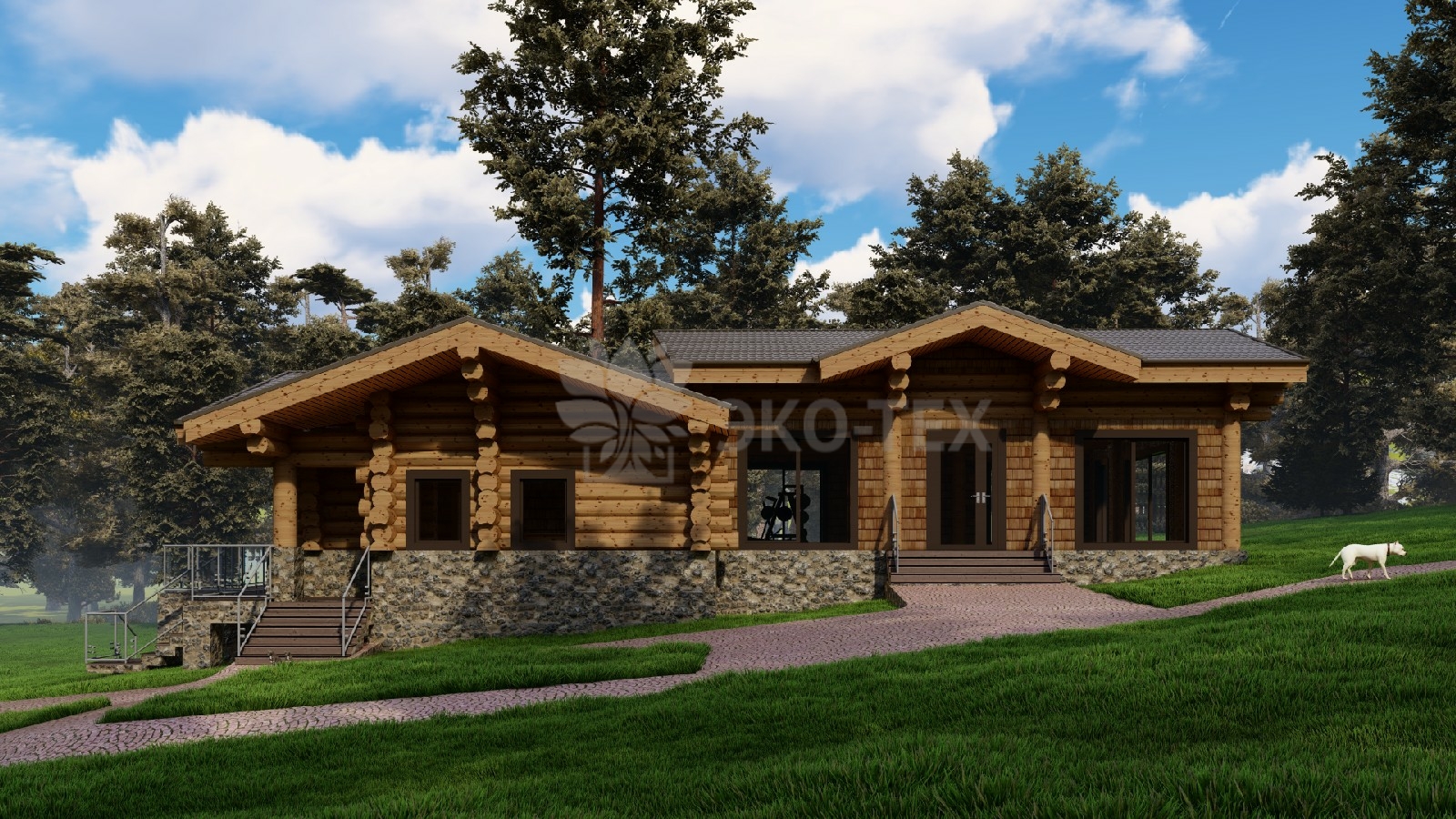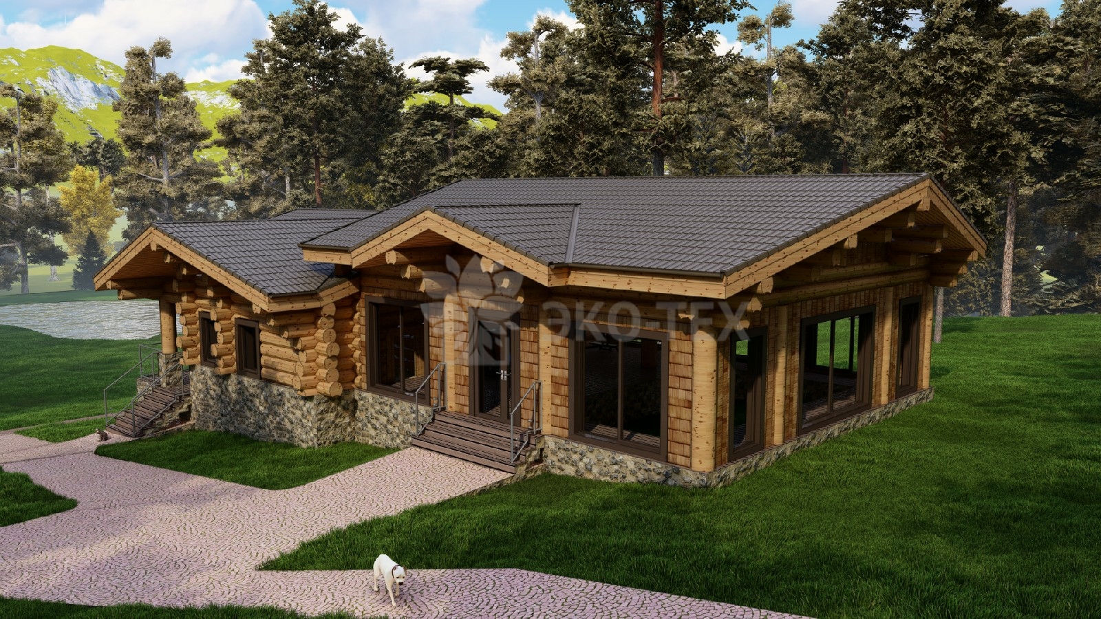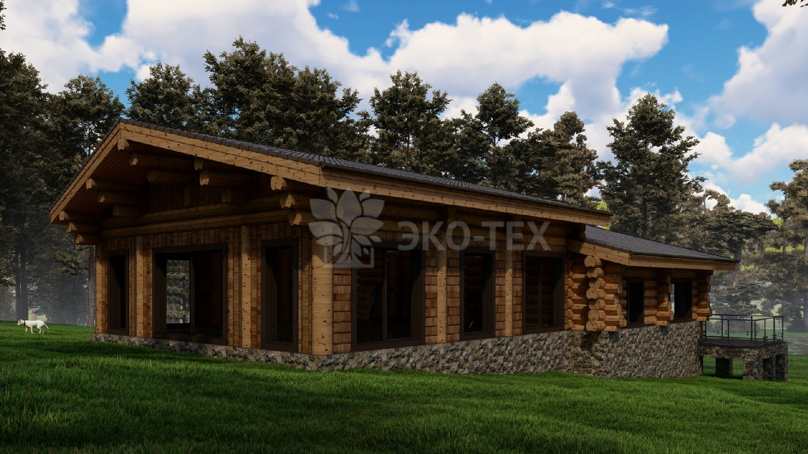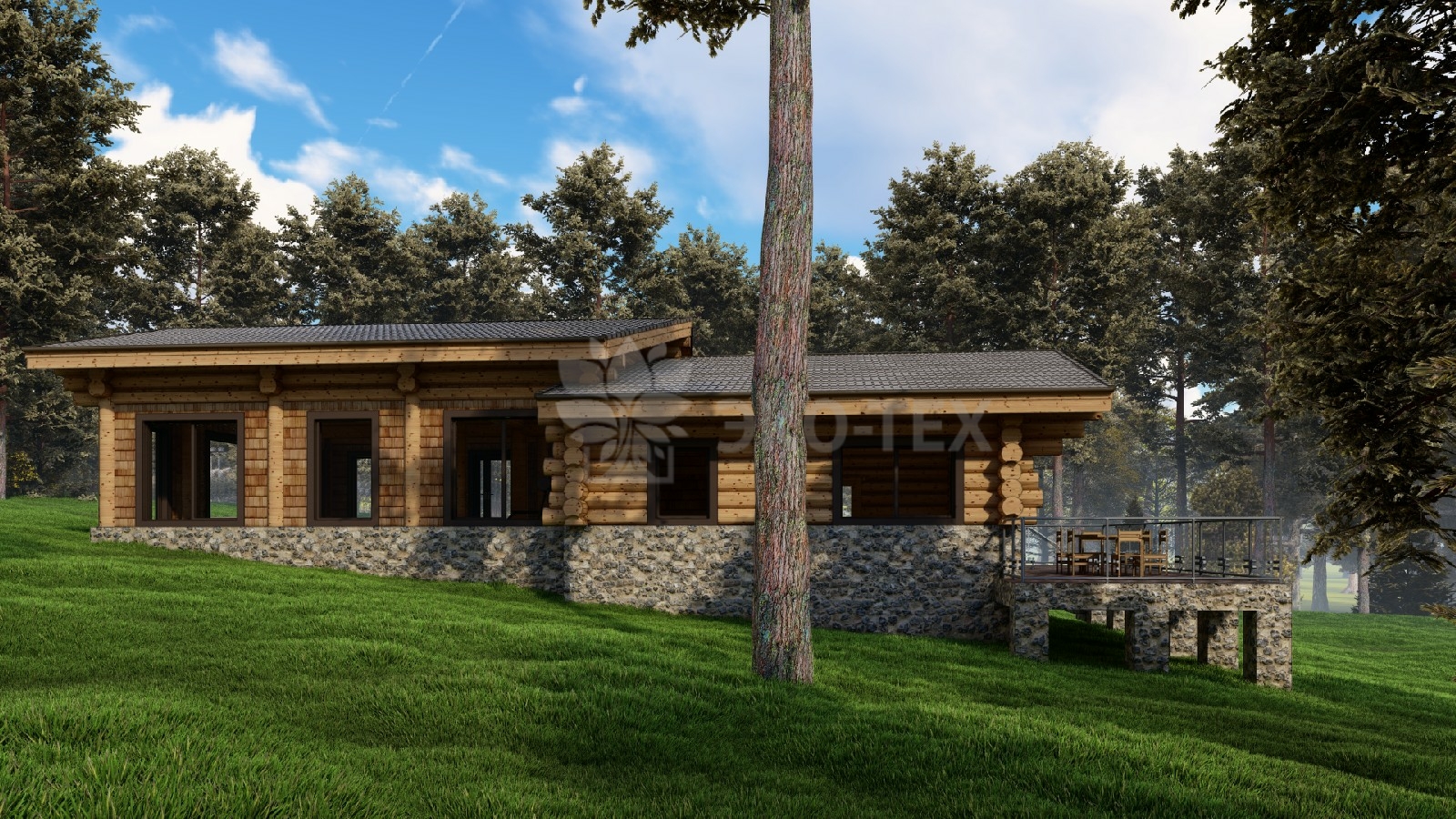 Большой банный комплекс с бассейном, террасой, спа зоной Ø бревна 32-36см