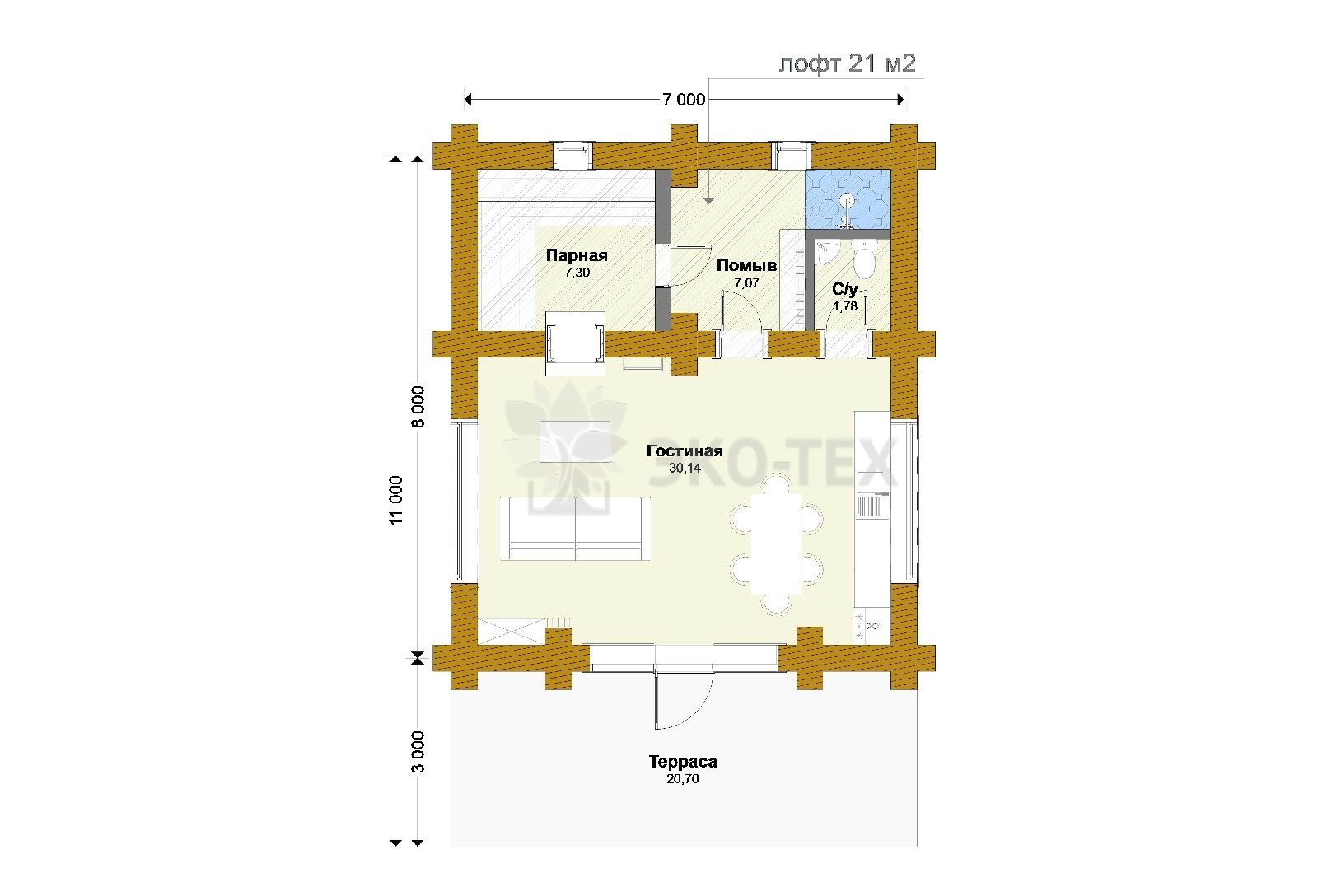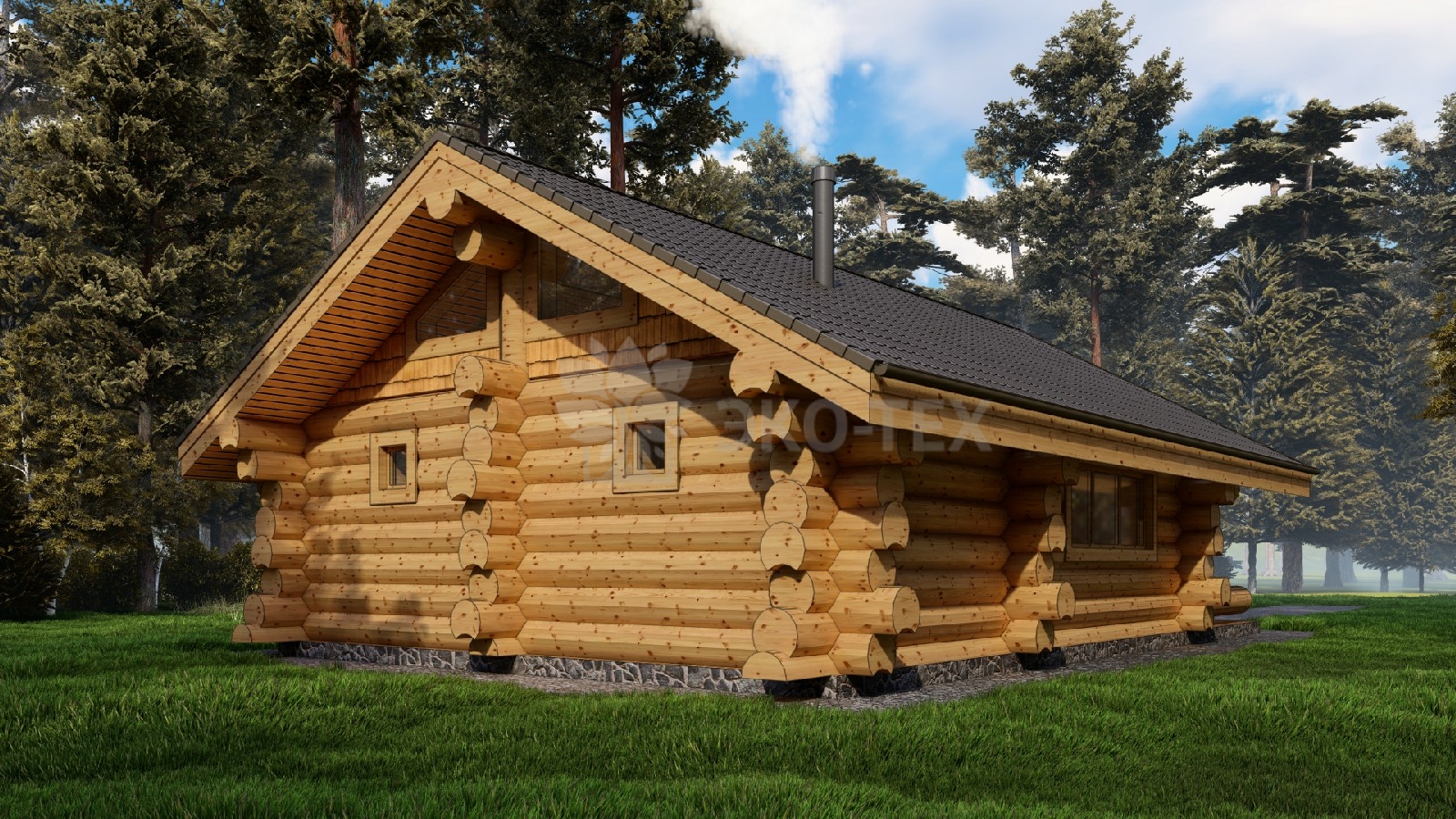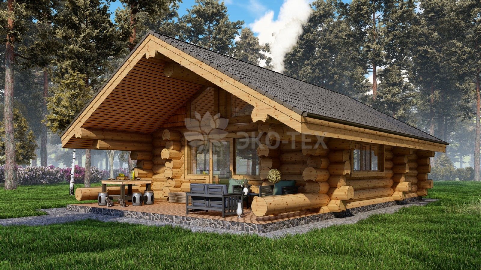 Проект большой одноэтажной бани с гостиной Ø бревна 38-42см