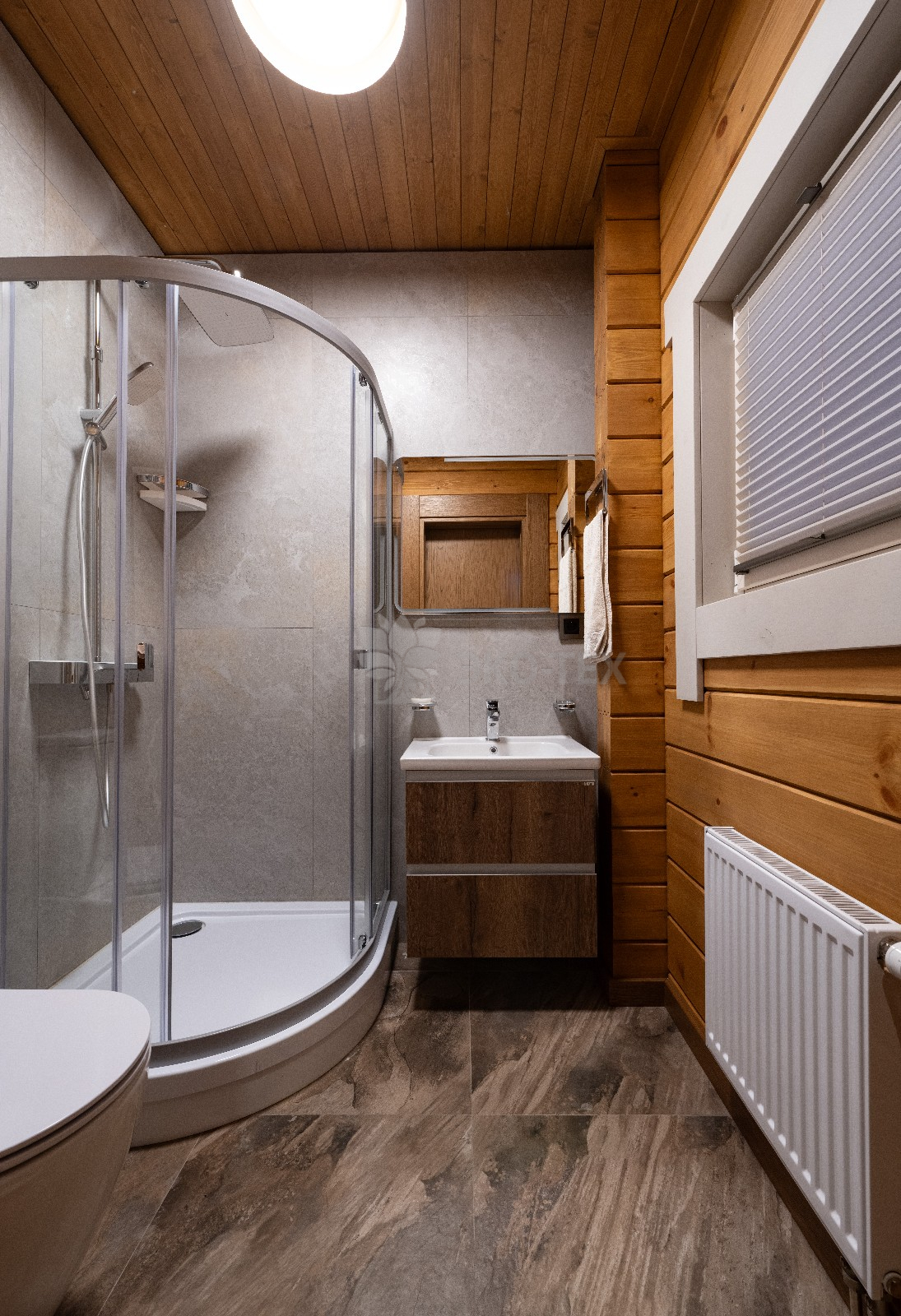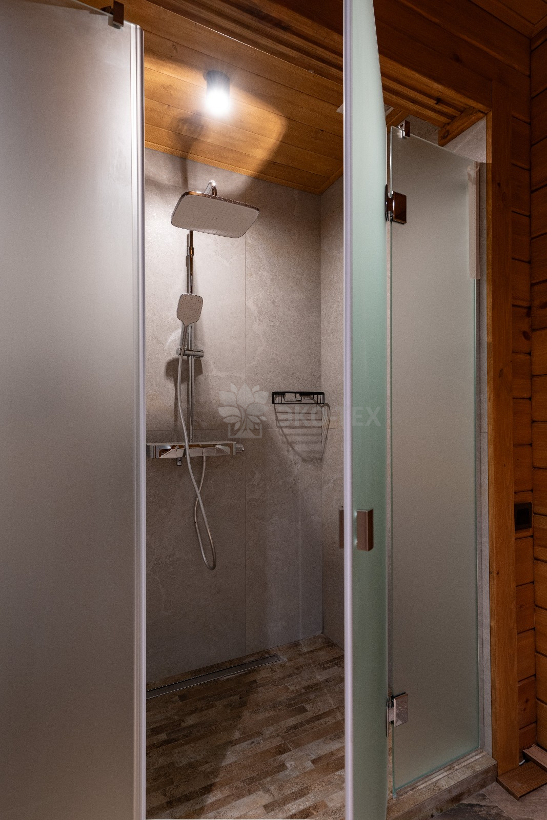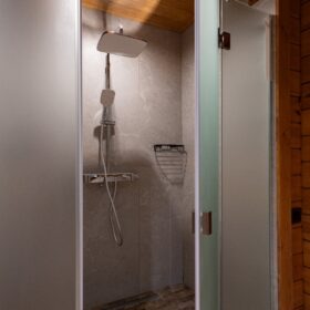 Непосредственно «банное отделение» представлено, в первую очередь моечной. Здесь находится душевая, в которой можно принять как классический, так и тропический душ.