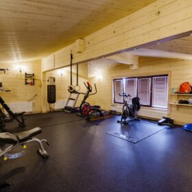 Теме здоровья посвящён прекрасно оснащенный, по последнему слову техники, в спортивный зал. В нём кроме различных тренажеров, можно найти спортивные снаряды на любой вкус — от гимнастических колец и мини — баскетбольной корзины до скакалок и мячей для фитнеса.