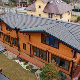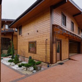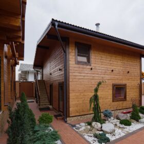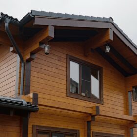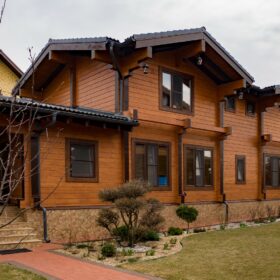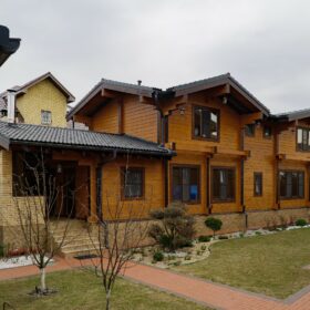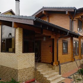 Этот проект, по праву, является нашей гордостью. При первом знакомстве с ним сразу становится понятным, почему. Двухэтажное красивое и добротное строение, выполненное из натуральных материалов, производит солидное впечатление.