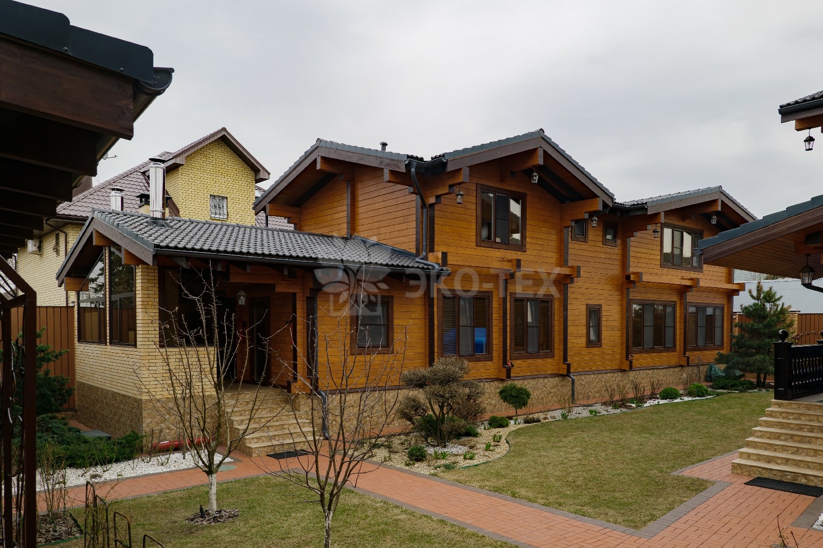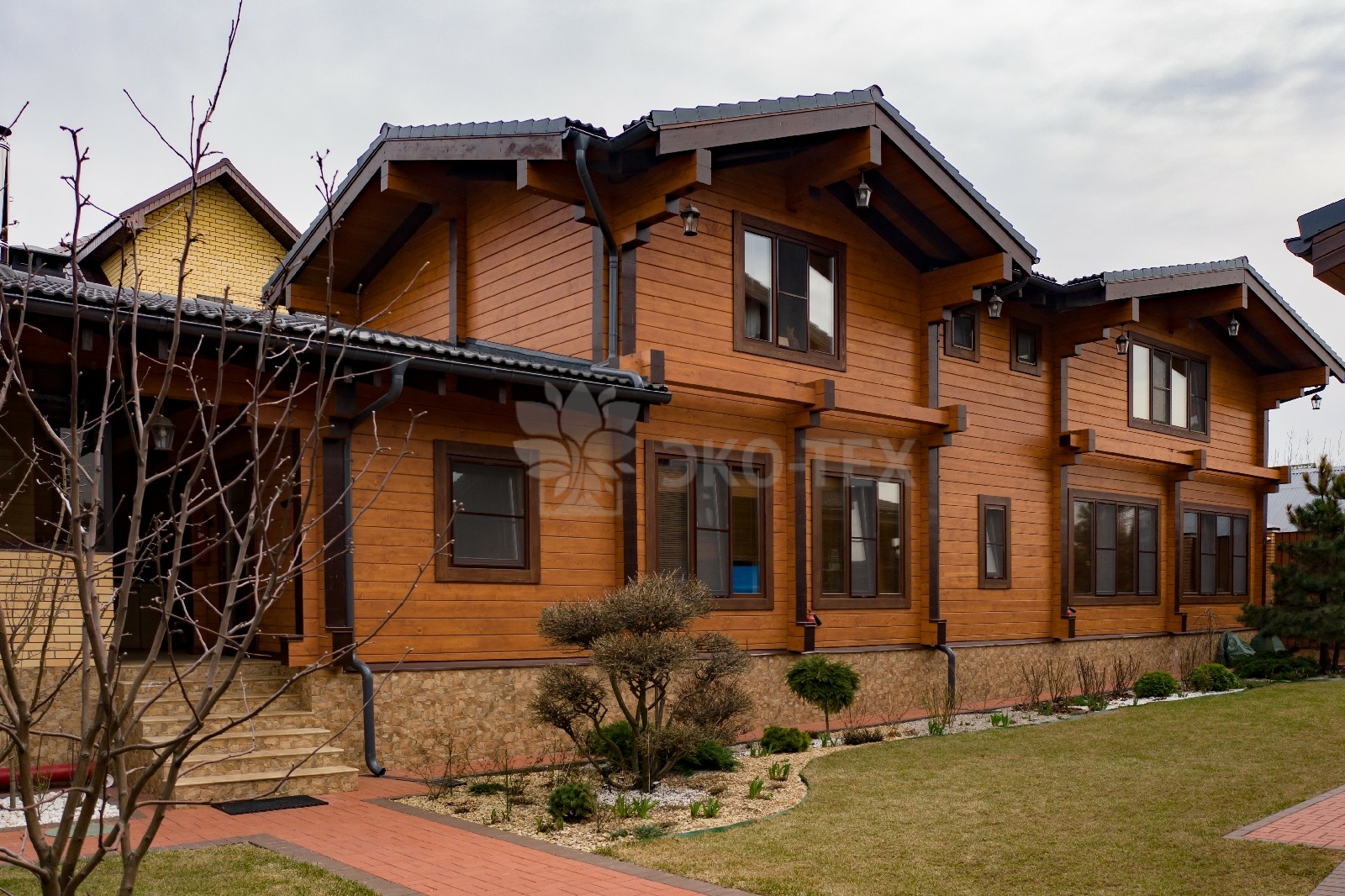 Двухэтажный солидный дом для большой семьи, материал клееный брус