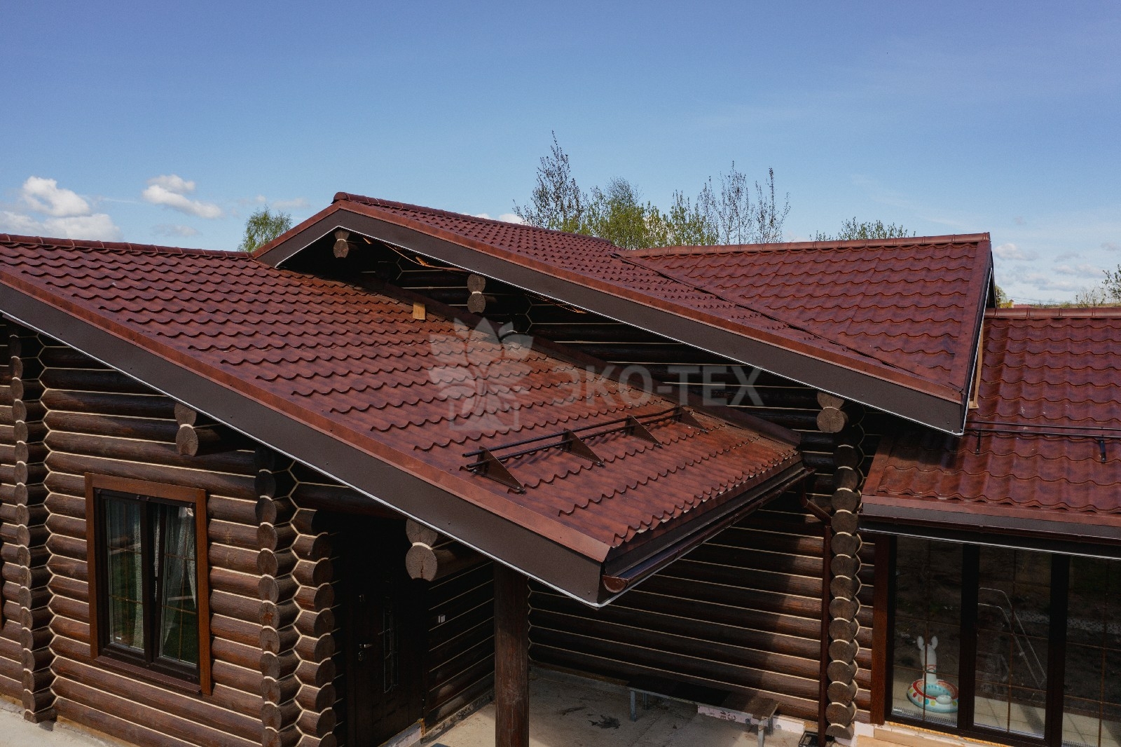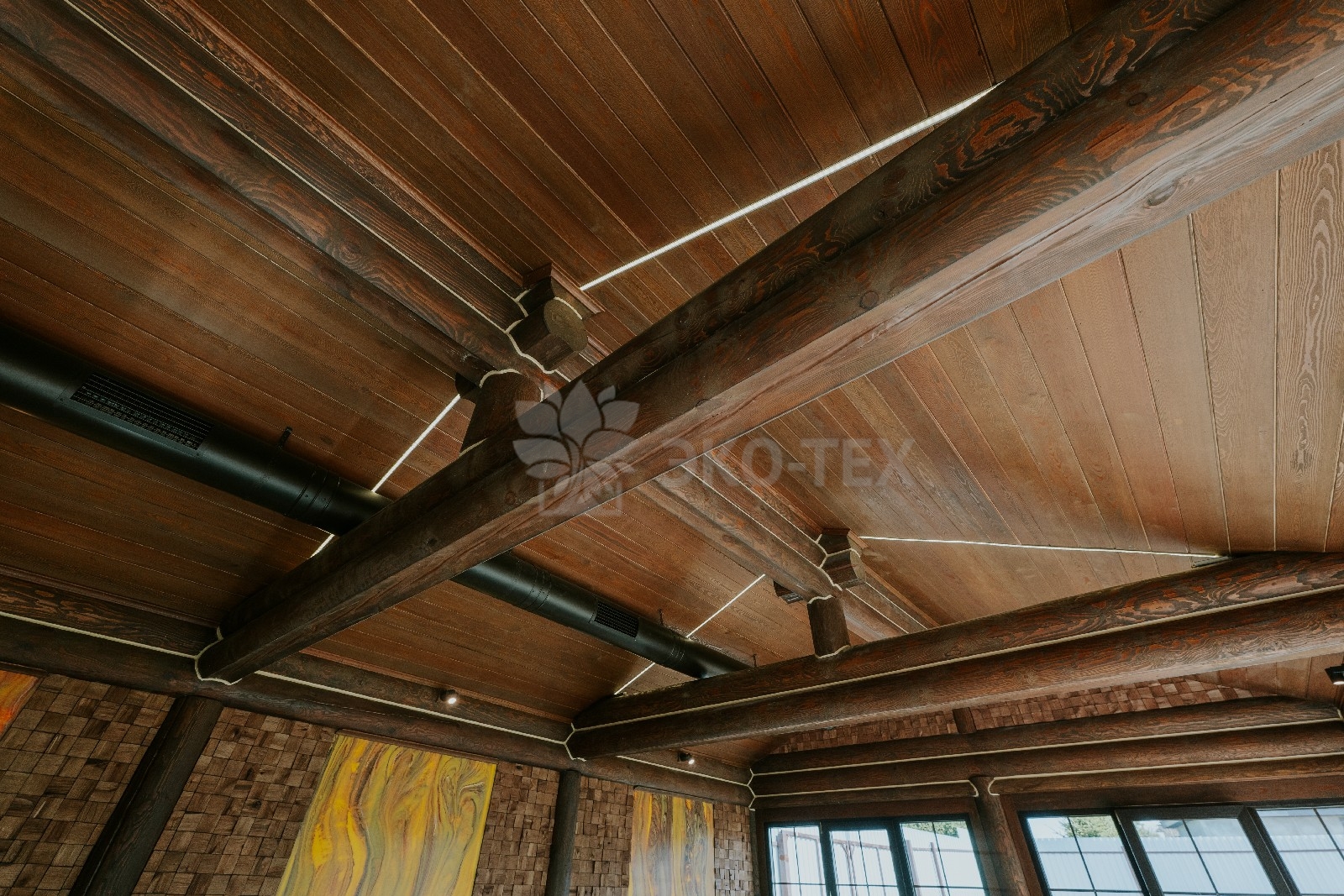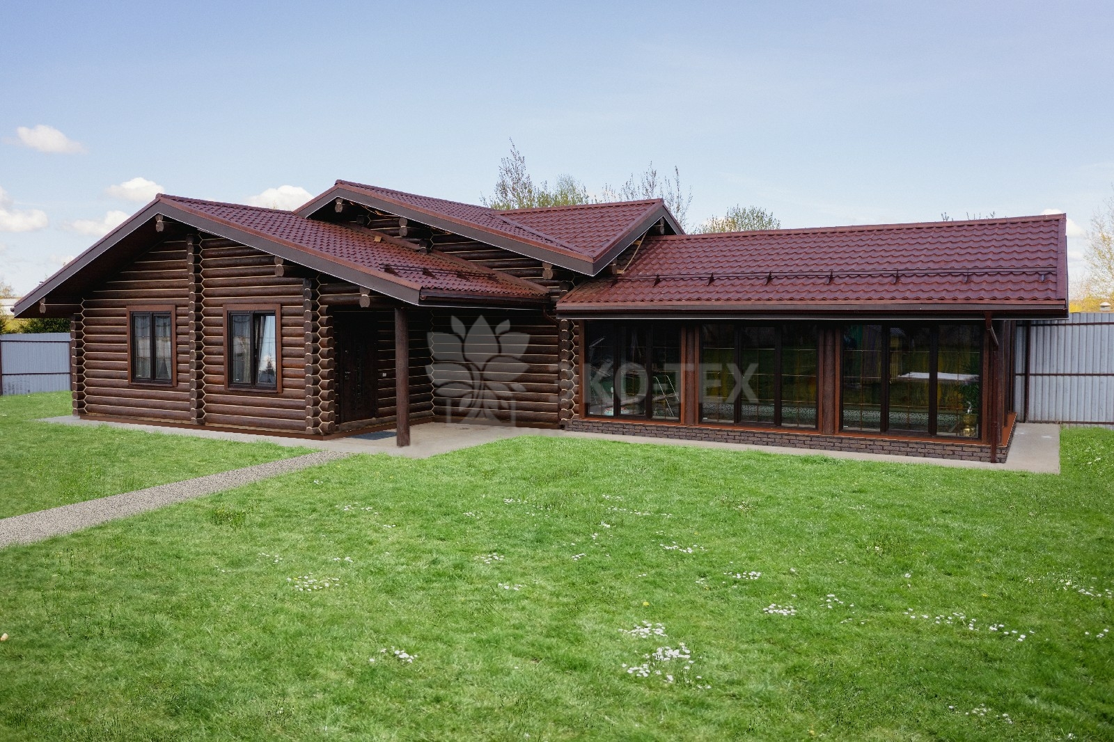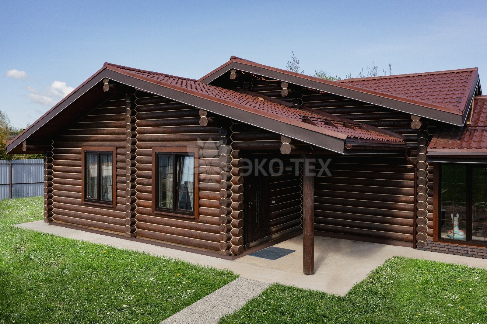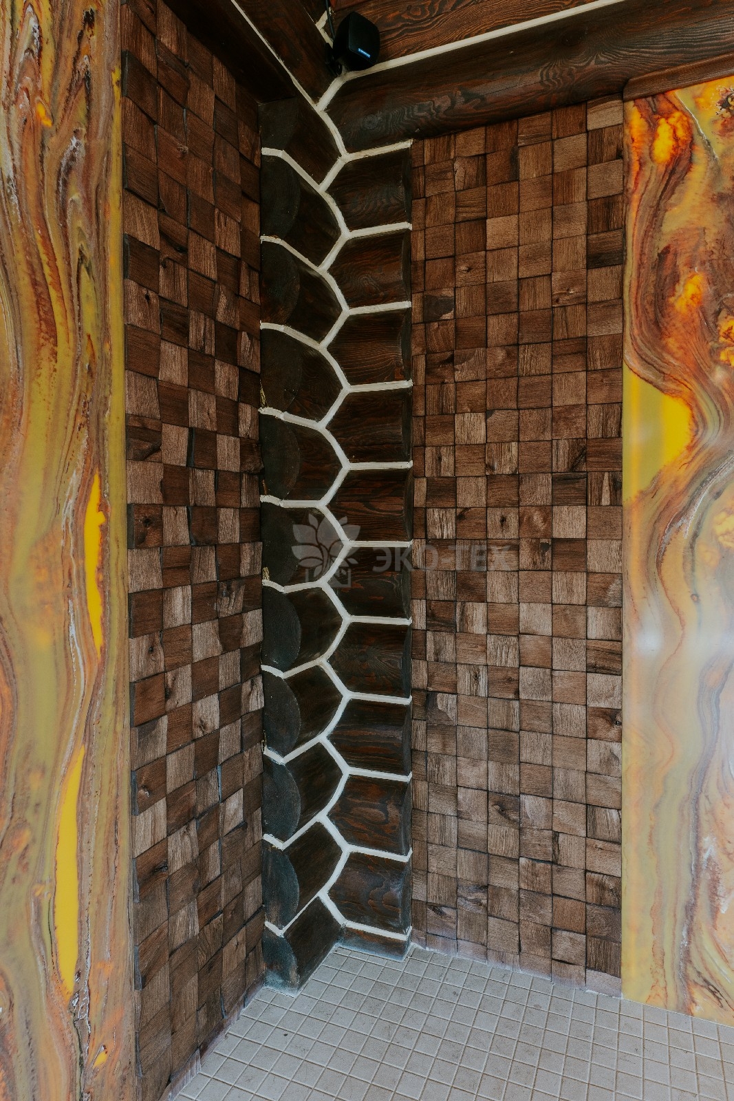 Внешне комплекс представляет собой сочетание классического деревянного сруба и панорамного остекления, сосредоточенного в зоне бассейна. Большая площадь окон создаёт ощущение природного водоёма, в котором всегда комфортно освежиться и снять усталость. Зеркальная поверхность воды, живые картины за окном дарят гармонию и умиротворение.