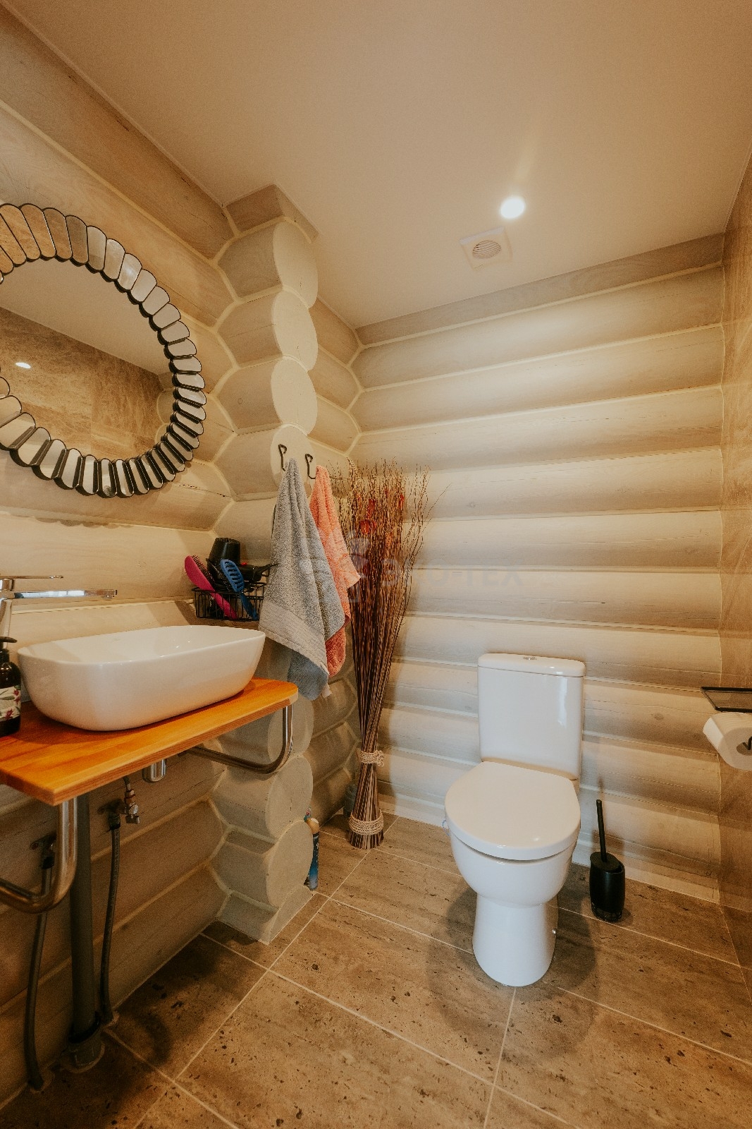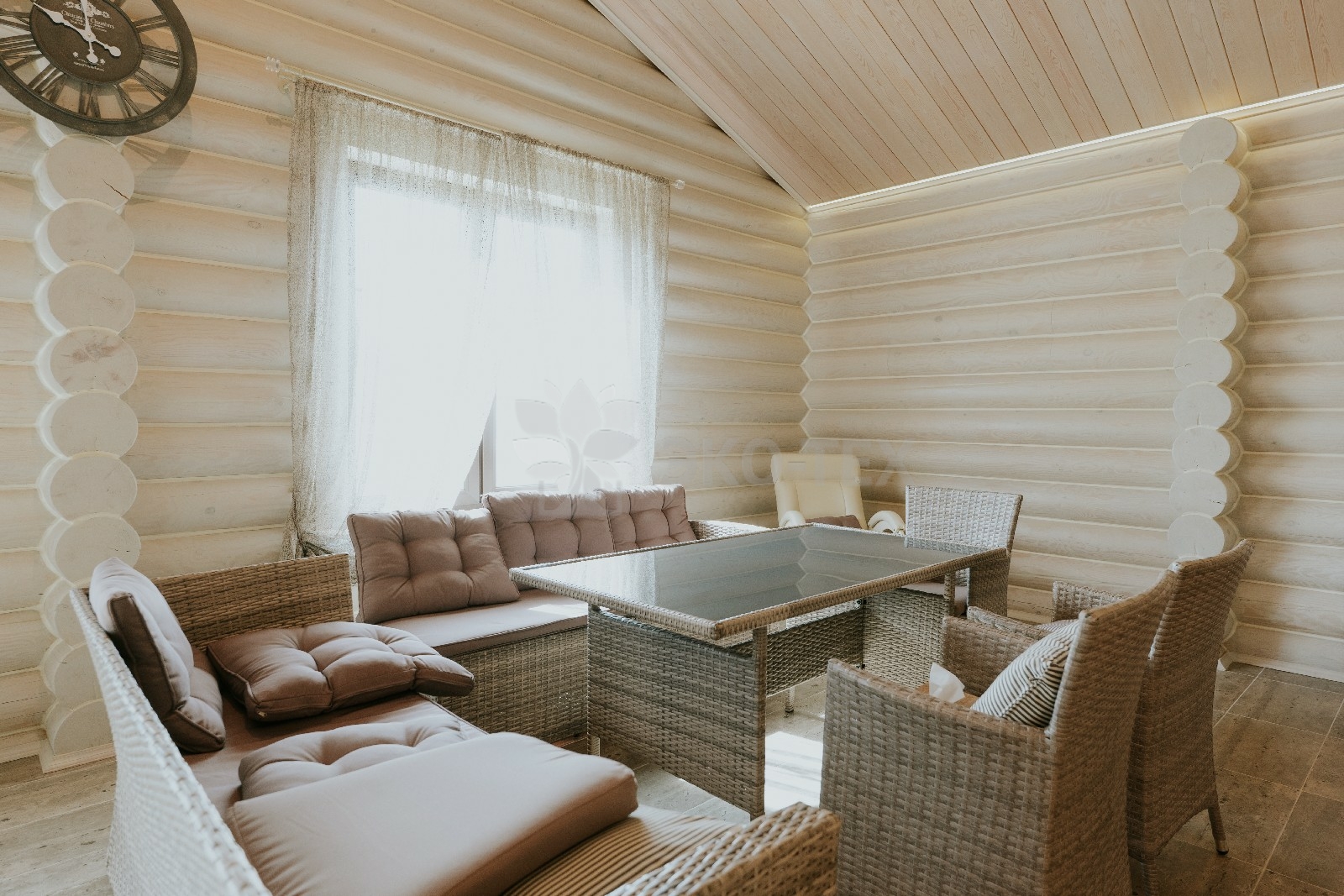 Баня из оцилиндрованного бревна по проекту Антоновка