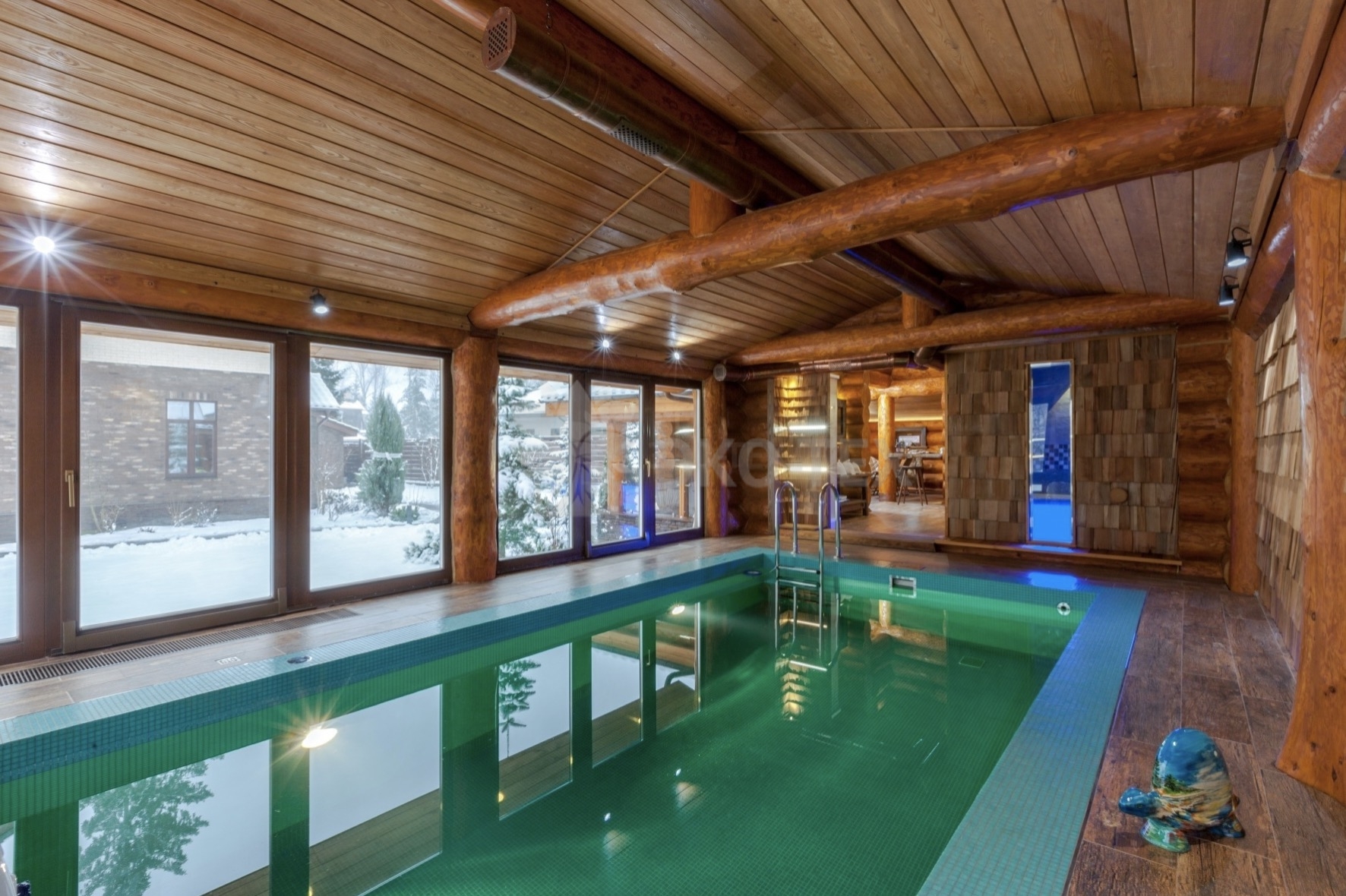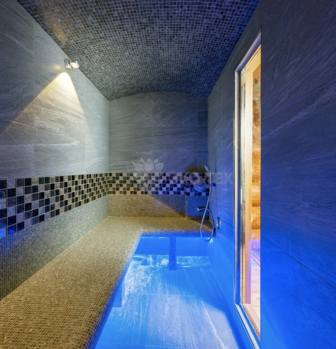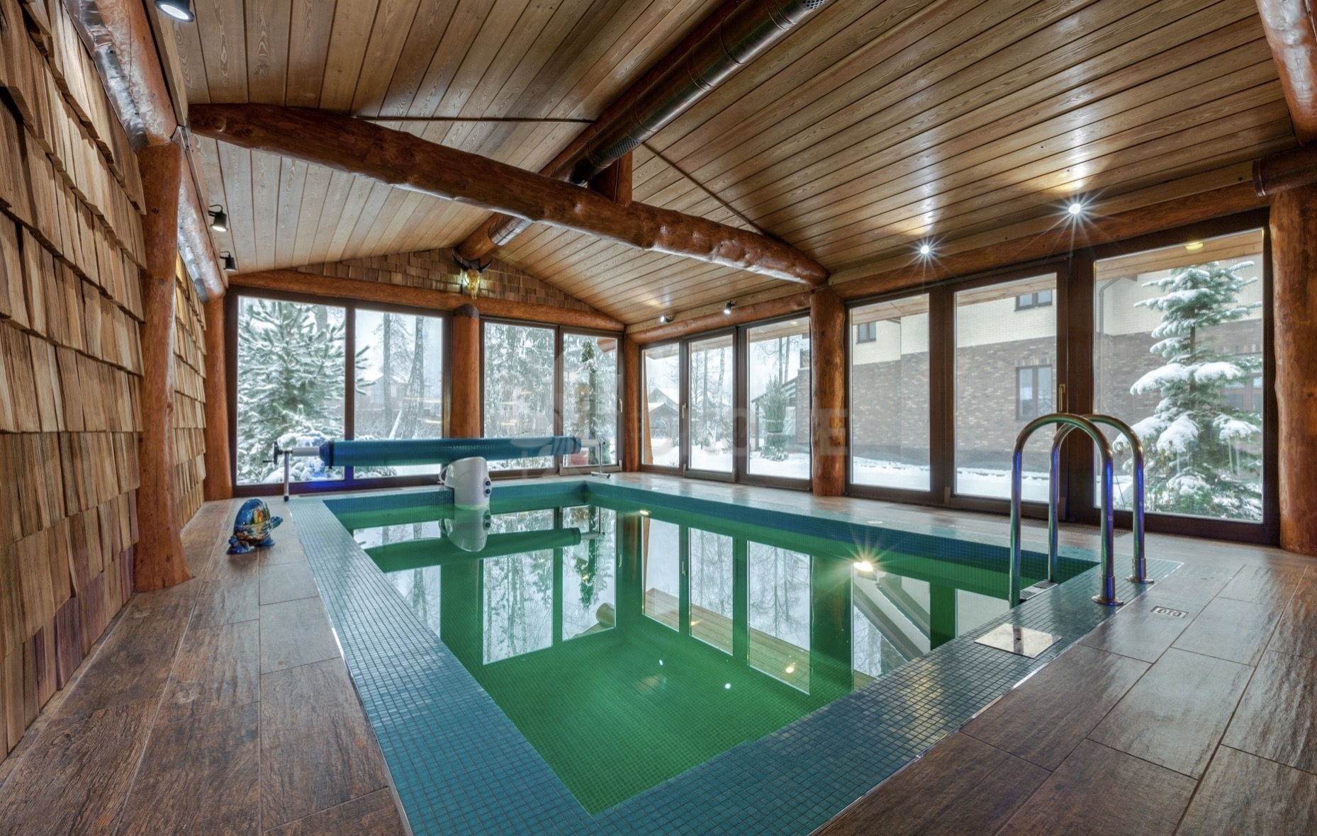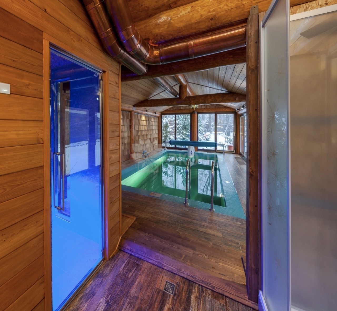 Такие процедуры, несомненно, подарят ощущение легкости во всем организме. Площадь строения позволила разместить и бассейн. Бассейн помогает поддерживать мышцы в тонусе, заряжает бодростью.