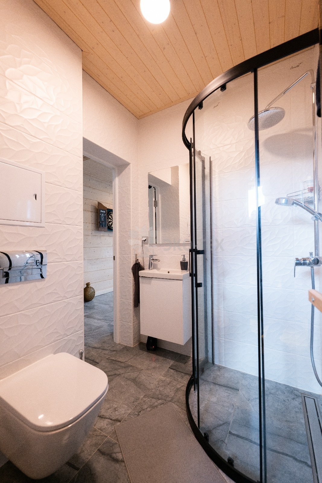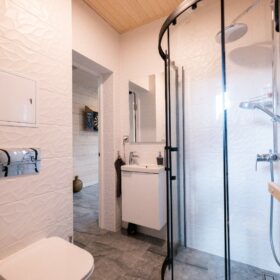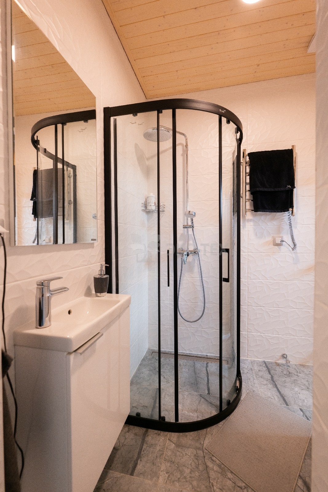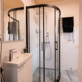 - Душевая кабина представляет собой практичное и компактное решение для ванных комнат.