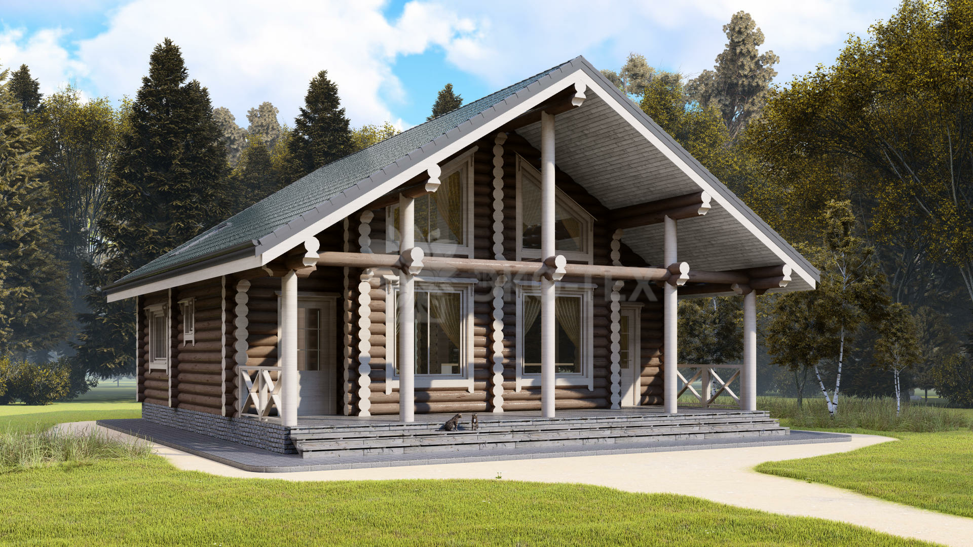 Двухэтажный коттедж с большой террасой