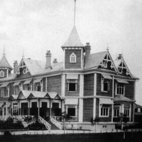 По технологии «в лапу» строили не только крестьянские хаты. Так возводились и богатые усадьбы. Стоит вспомнить дом барона фон Мекка, российского магната — железнодорожника и инженера немецкого происхождения. Его небольшой дворец был построен под Киевом в середине XIX в. по методу «в лапу», но об этом трудно догадаться – соединения умело скрыты наличниками белого цвета. В отличие от обычных традиционных строений фундамент был выполнен из бута. Террасы, эркеры, башенки, дымоходы, дождевые козырьки украшали постройку и придавали ей необычный, несколько вычурный вид.