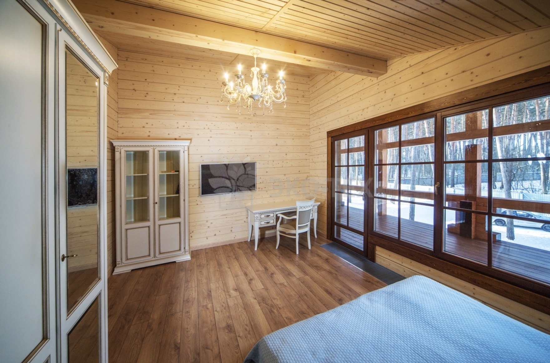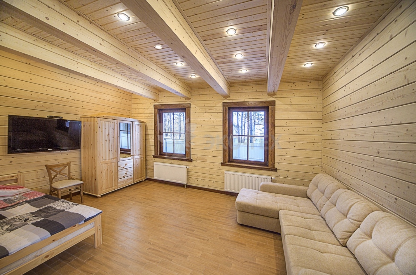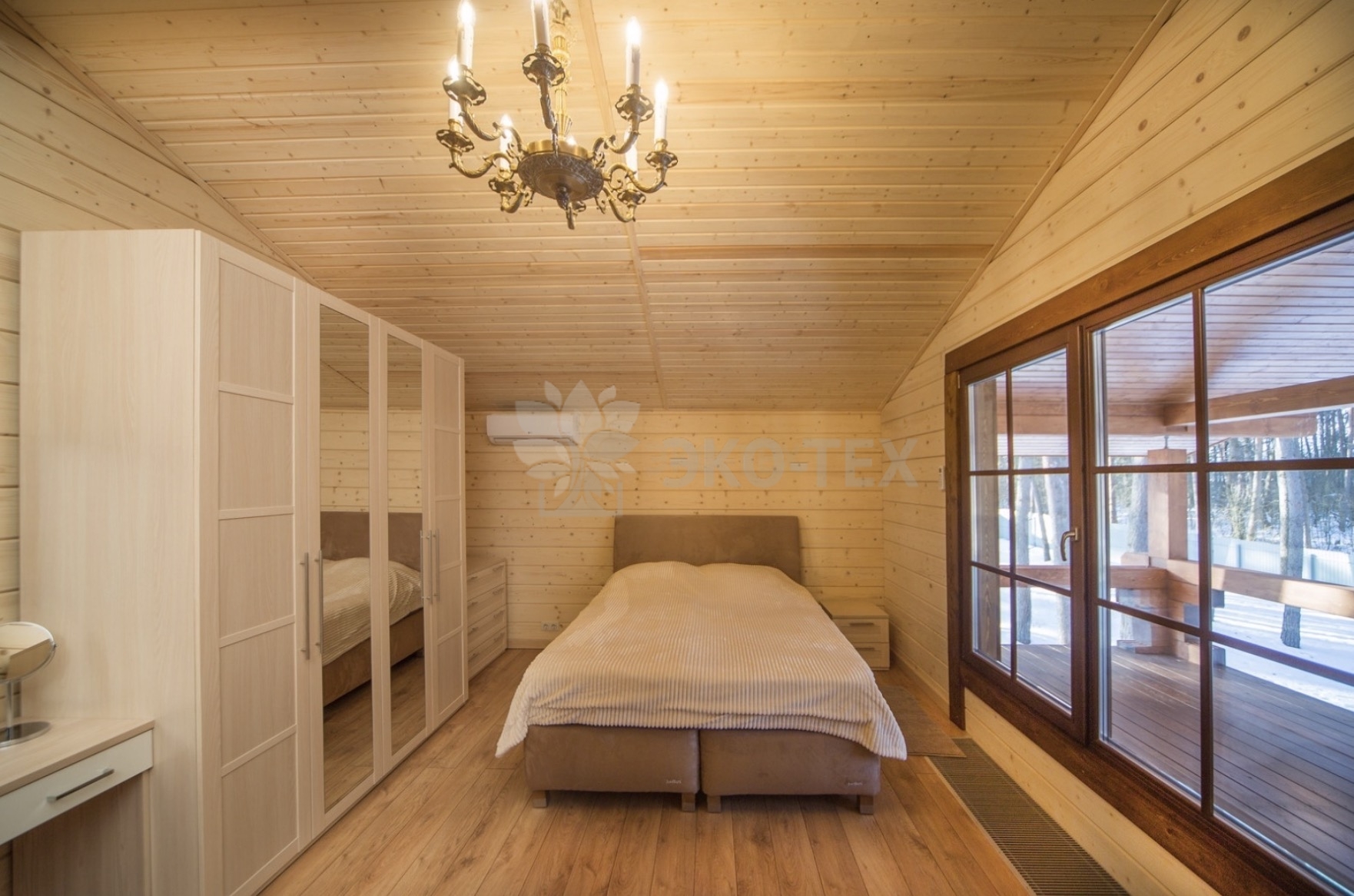 Мебель из массива дополняет уютную атмосферу деревянного дома.