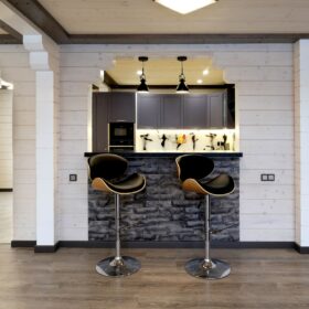 ОСП — ориентированно-стружечные плиты имеют красивую текстуру и подходят для гостиных и барных зон, для современного стиля это просто находка.
