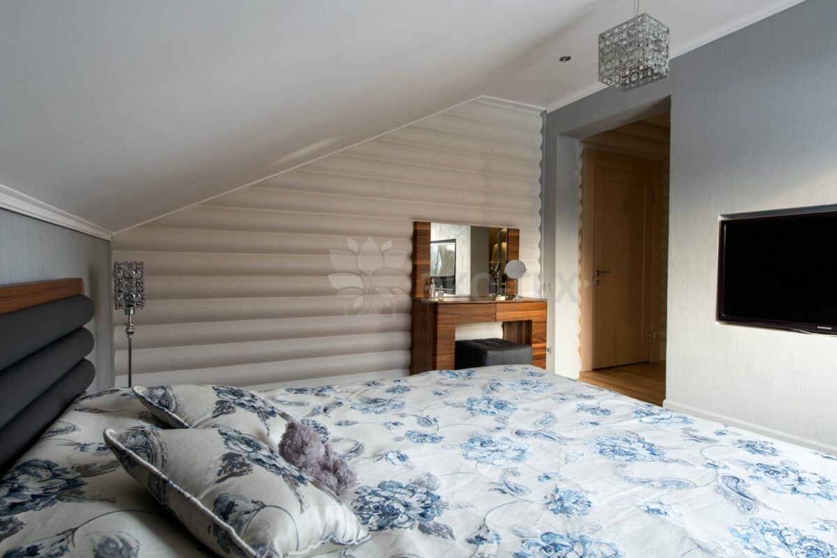 Двухэтажный дом с террасой, балконом, материал оцилиндрованное бревно