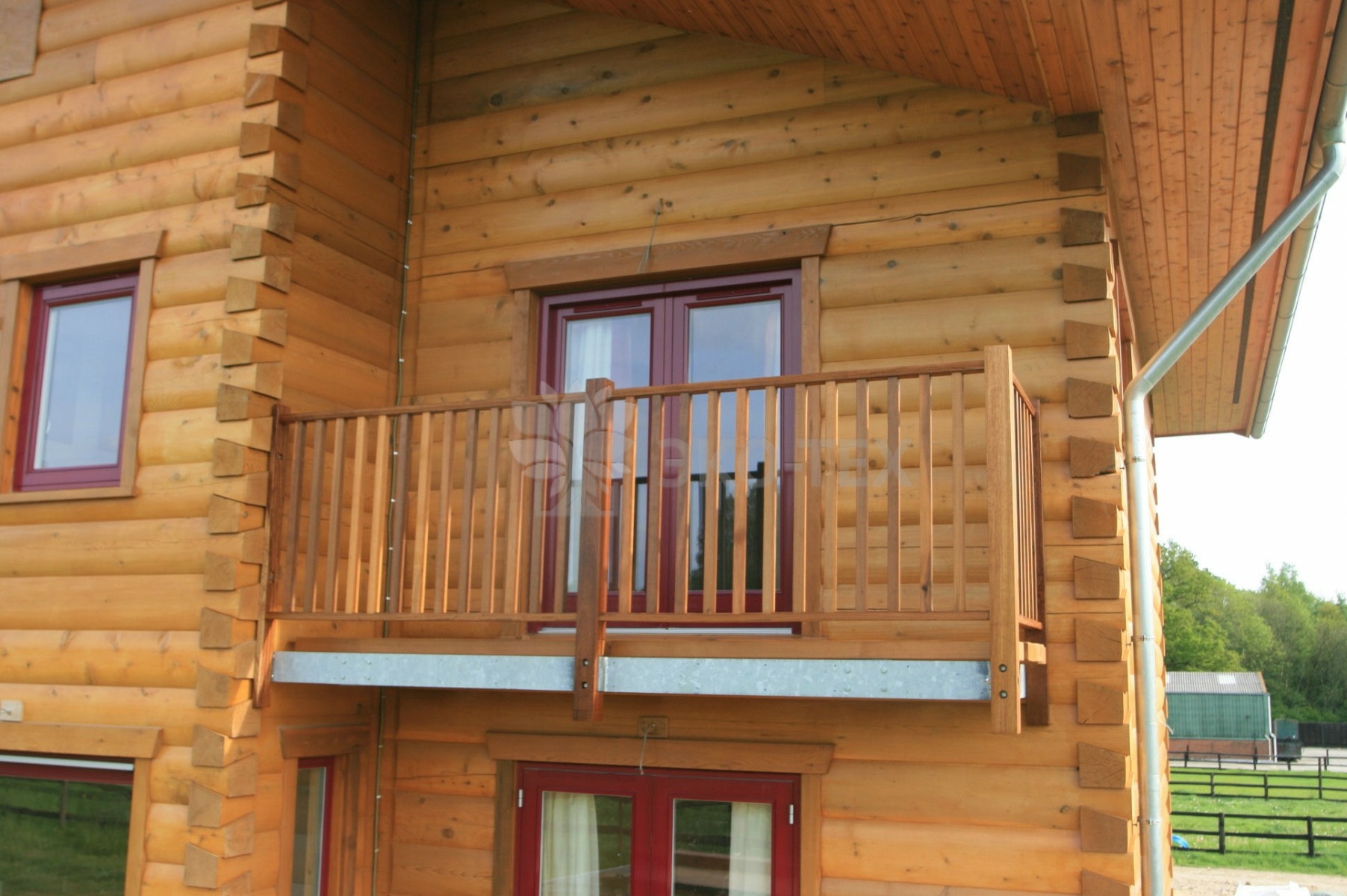 Балкон отличается полифункциональностью: на нем можно проводить чаепитие, складировать предметы утвари и обустроить летнюю кухню. С помощью этого элемента можно придать экстерьеру дома из бревен новый формат восприятия. Это может быть конструкция строго геометрической формы, полукруглой или изогнутой. Остекление балкона – отличное решение, с помощью которого обустраивается зона блокирования холодного воздуха в осенне-зимний период.