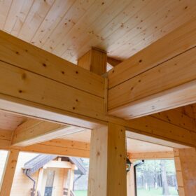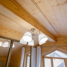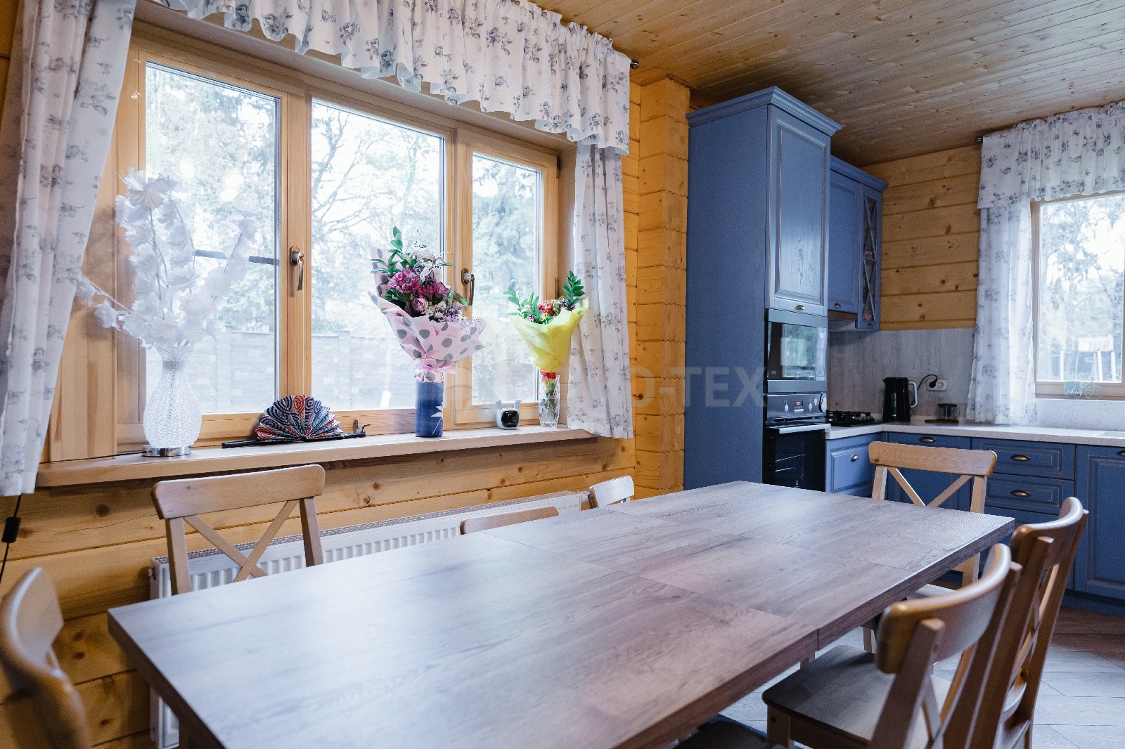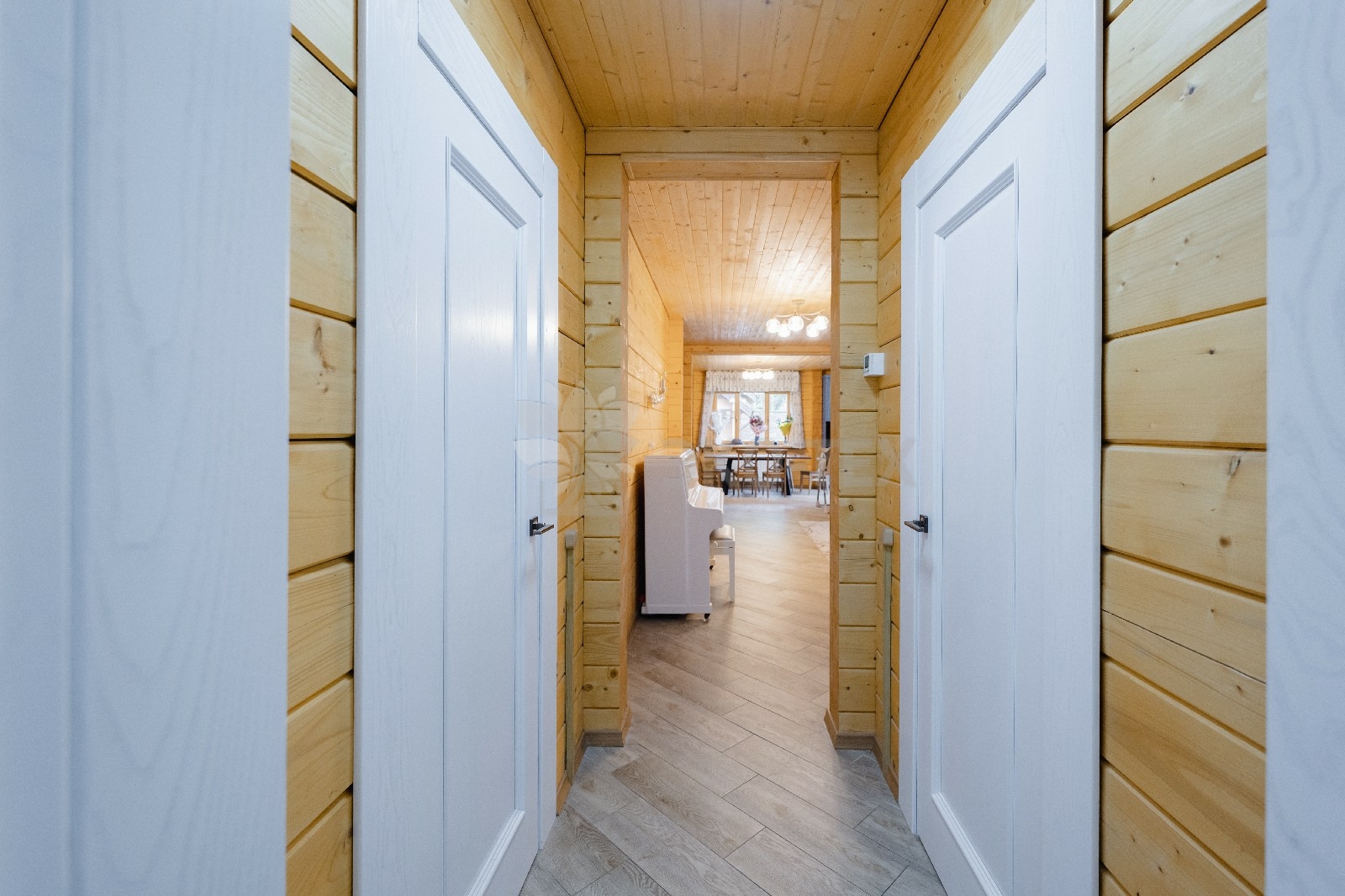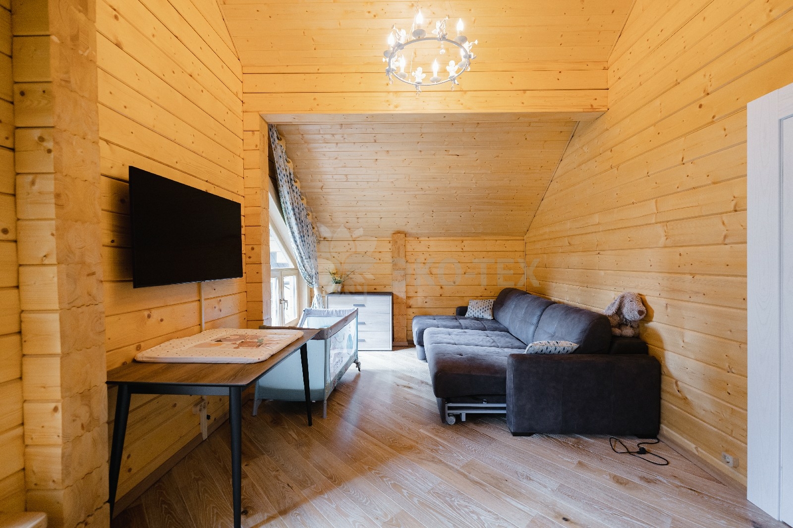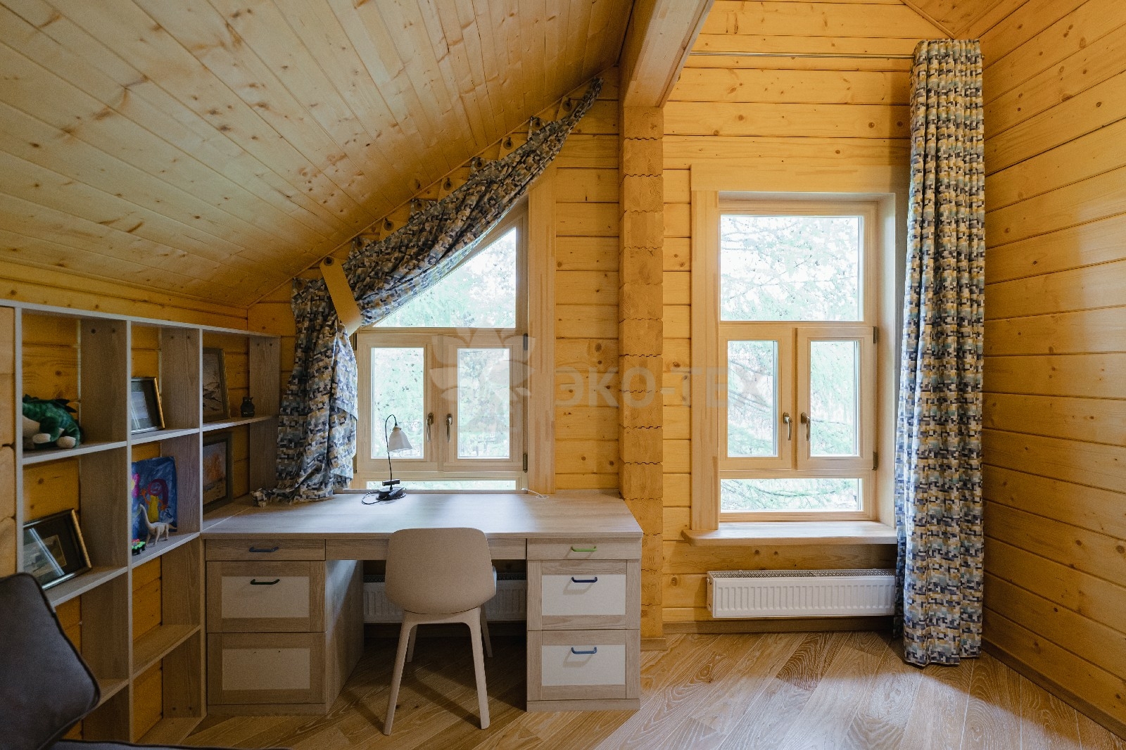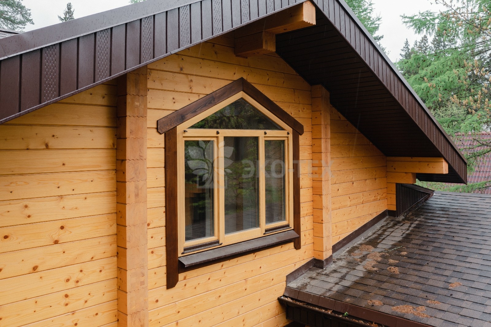 Дом построен из клеёного бруса, который, на сегодняшний день, является одним из наиболее экологичных и современных строительных материалов.