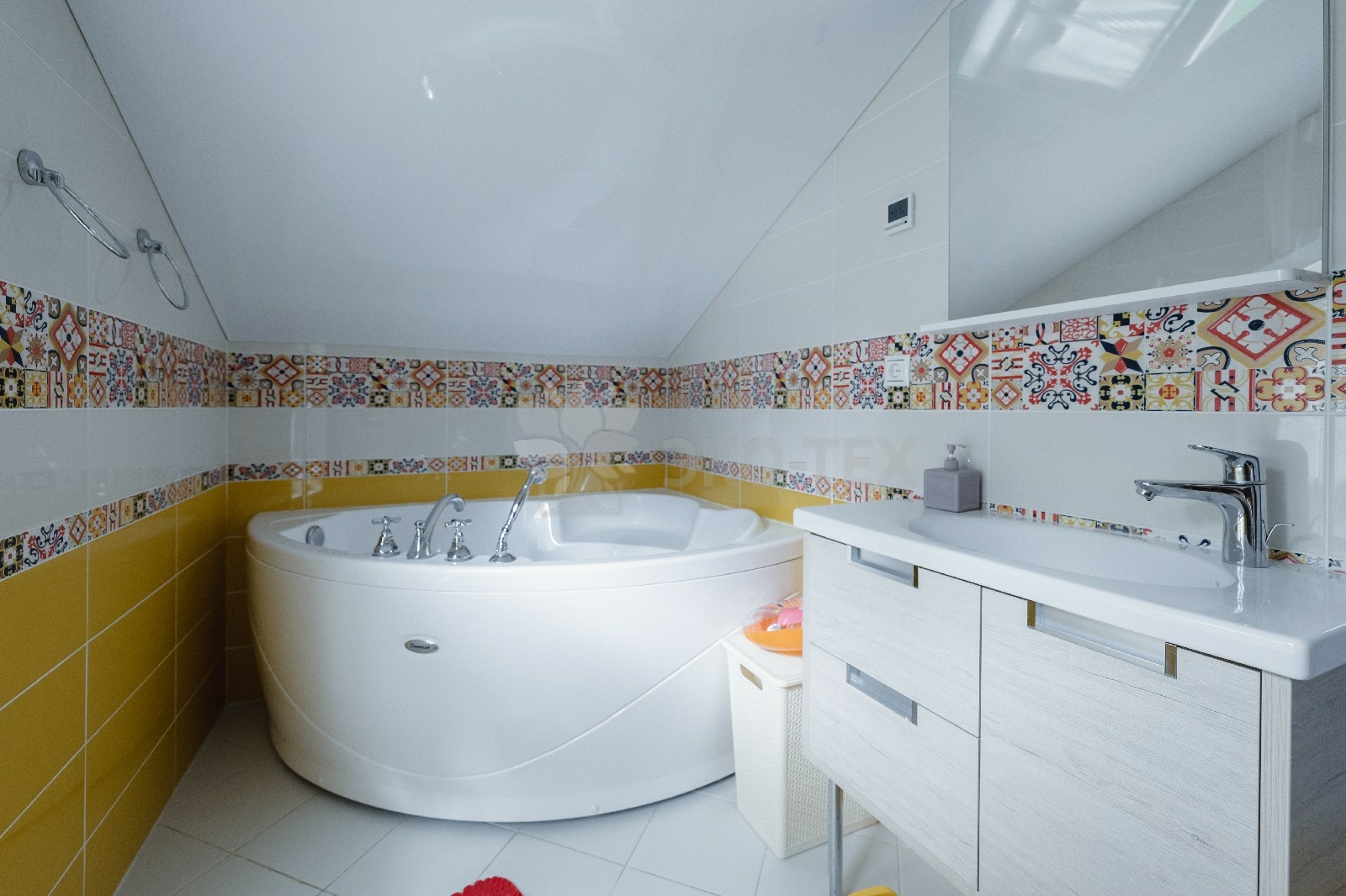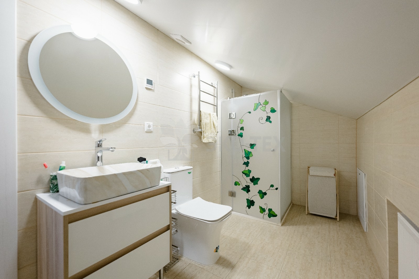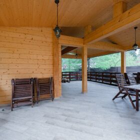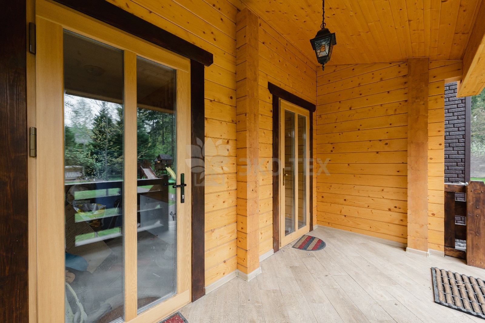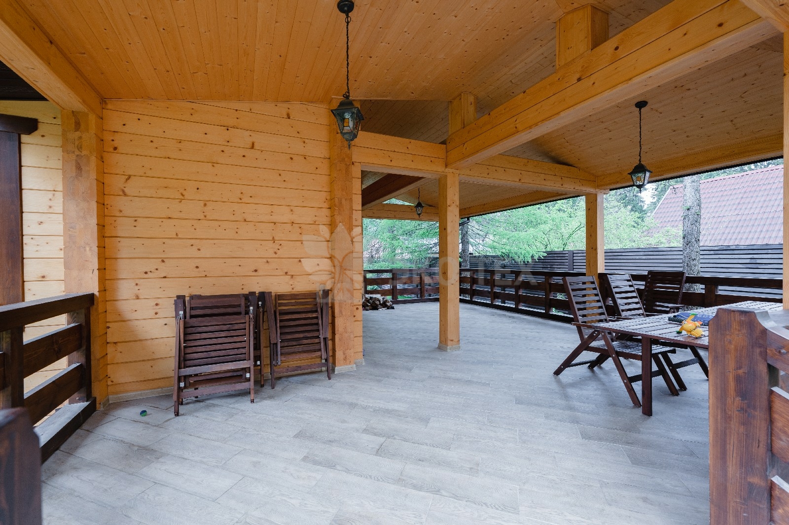 Большая просторная терраса, в которую переходит крыльцо, позволяет проводить на свежем воздухе большую часть времени, а летние вечера, проведённые здесь вместе с друзьями, оставят в вашем сердце самые живые и тёплые воспоминания. Площадь террасы позволяет, при необходимости, превратить её даже в площадку для игр с детьми.