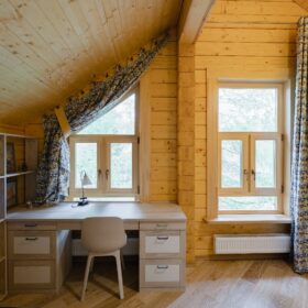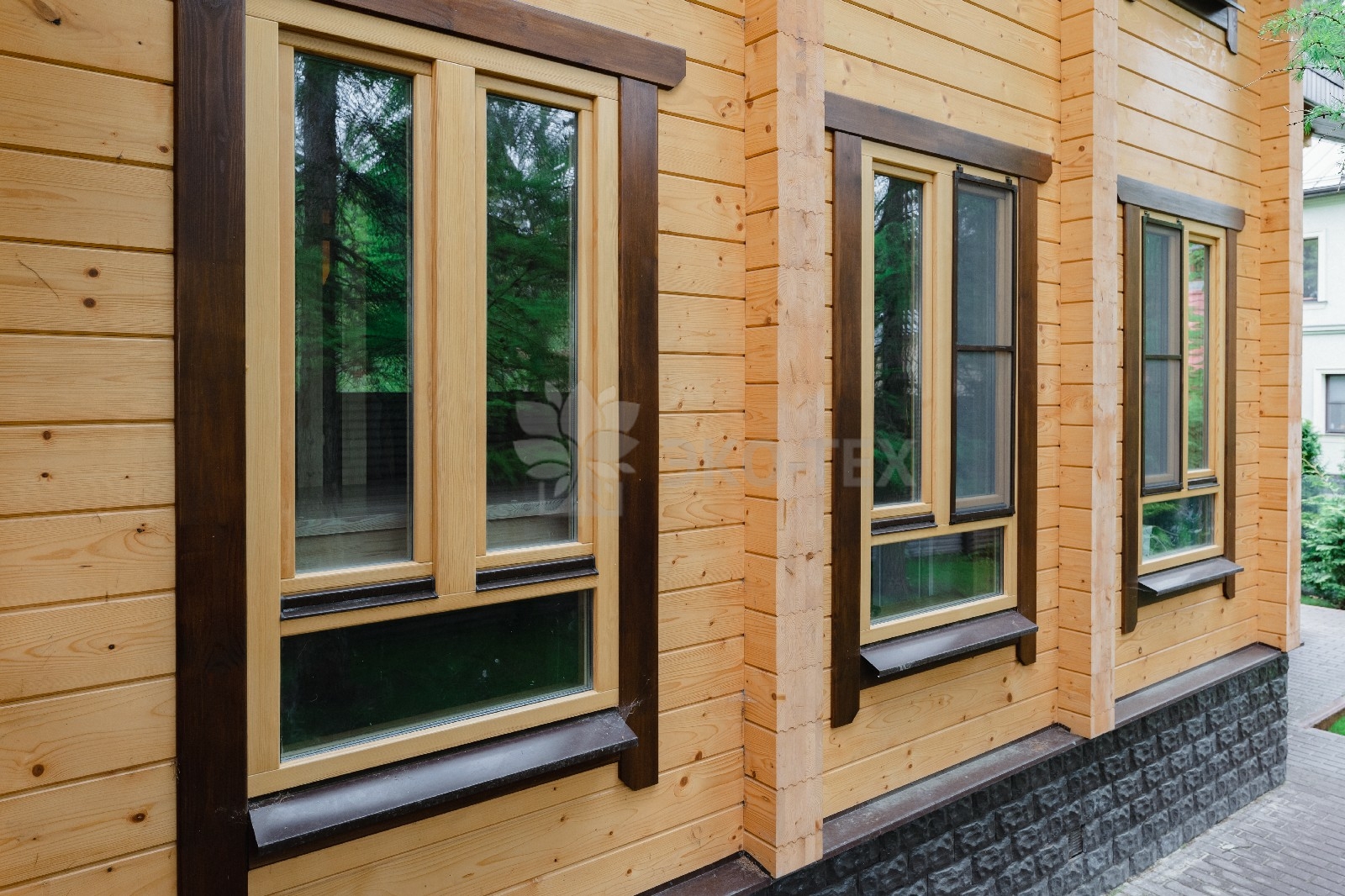 За счёт того, что профиль клеёного бруса имеет идеальную геометрию, коттедж выглядит фактурно и красиво.
