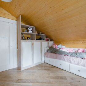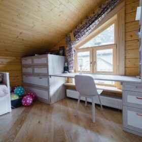 Галерея объединяет три комнаты — спальни различной площади. Две боковые комнаты имеют собственные гардеробные. На втором этаже имеется отдельный санузел.