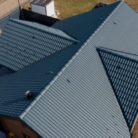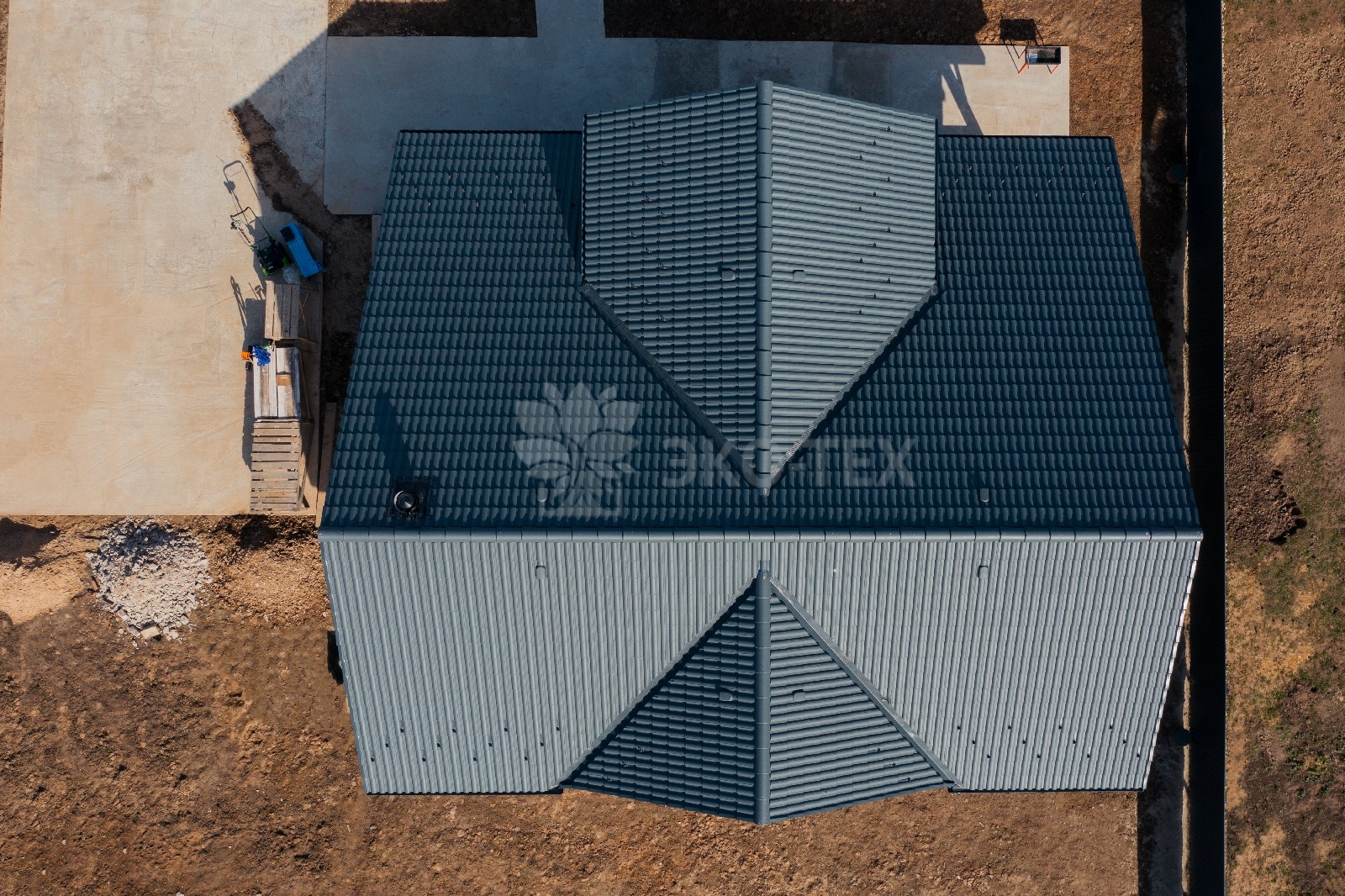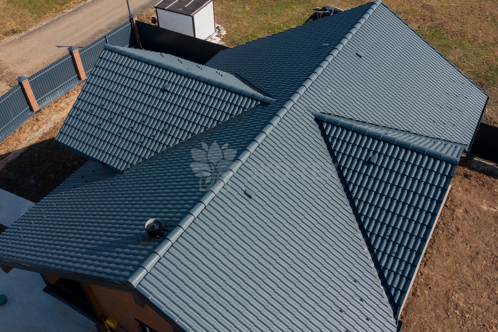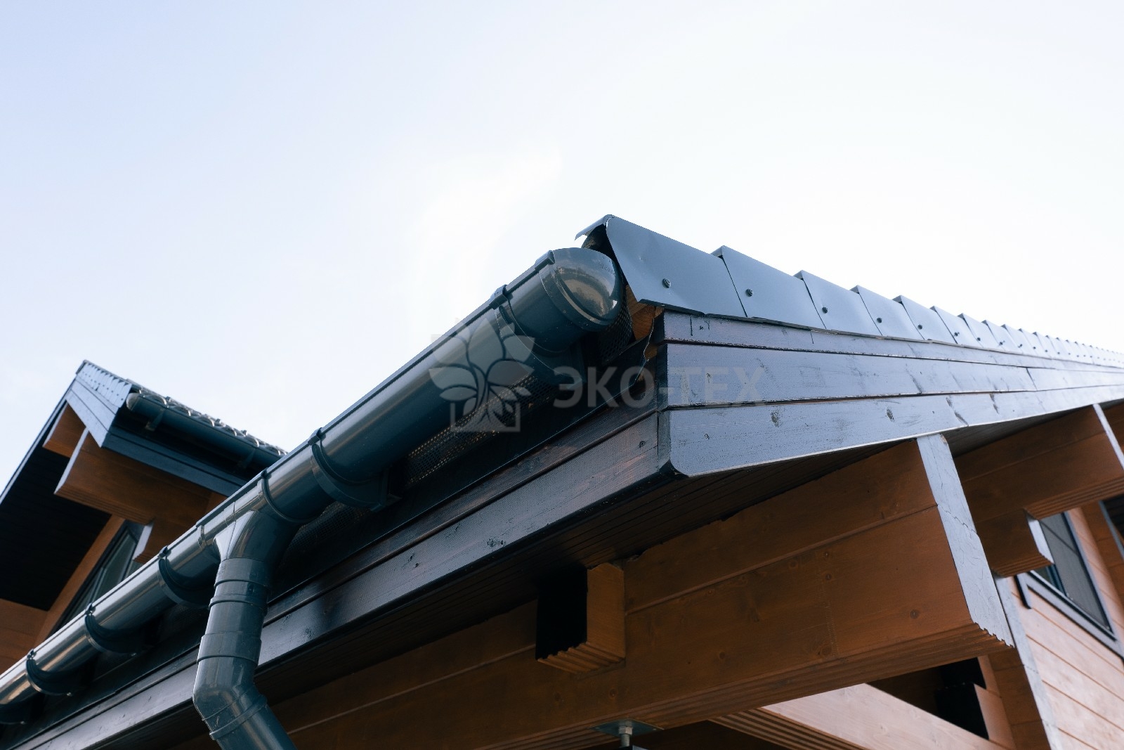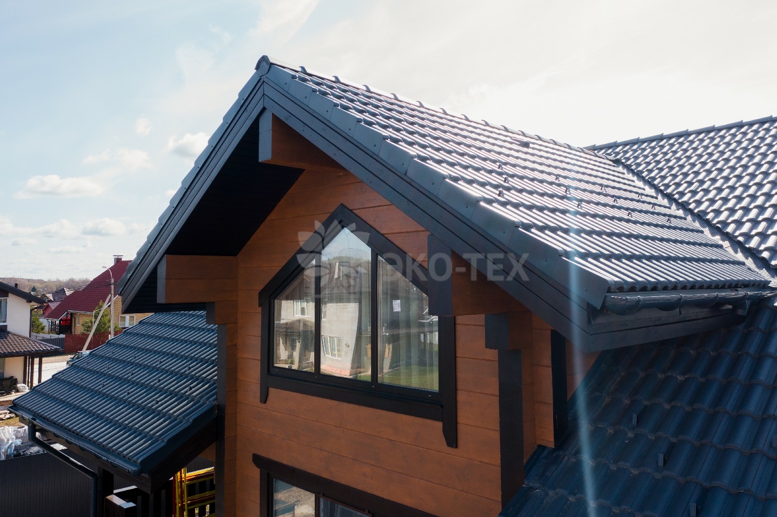 Крыша, имеющая сложный профиль, обеспечивает надёжную защиту дому в любое время года.