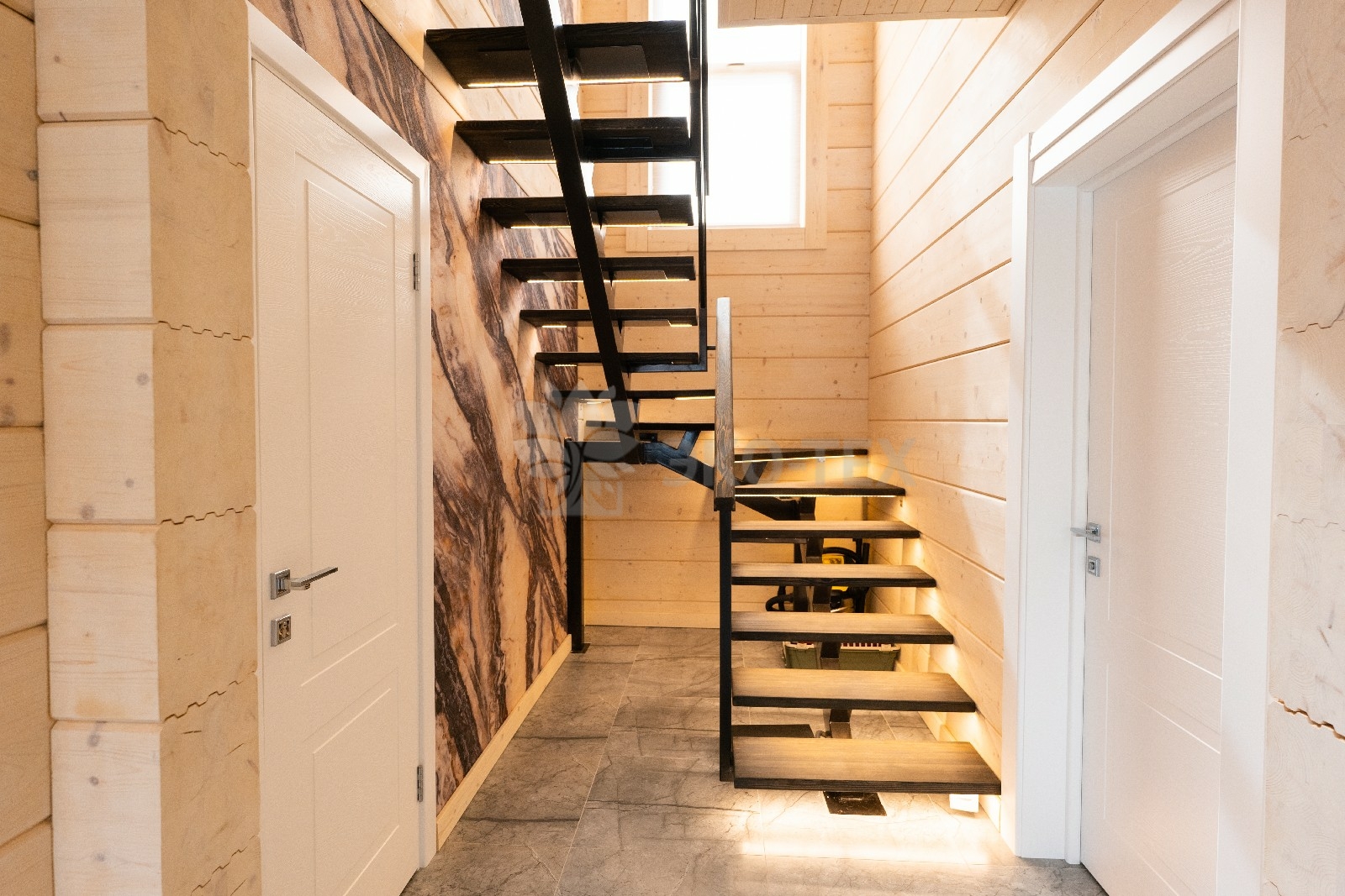 Все комнаты выходят в общей холл, ведущий на лестницу. На втором этаже также имеется собственный санузел.