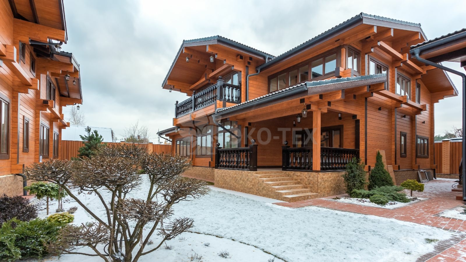 Двухэтажный солидный дом для большой семьи, материал клееный брус