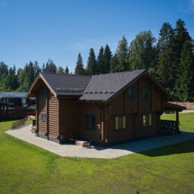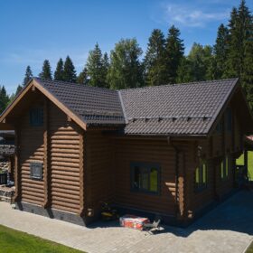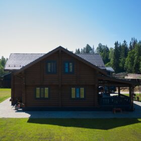 Сруб выполнен из Архангельской сосны, которую мы заготавливаем на собственных лесных делянках. Брёвна, изготовленные на нашем собственном производстве, отличается высоким качеством и надежностью, а наш 20 летний опыт строительства является гарантией того, что дом прослужит ни одному поколению.