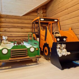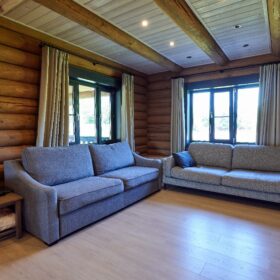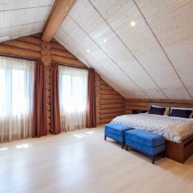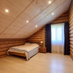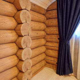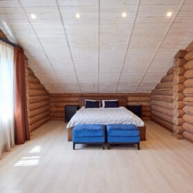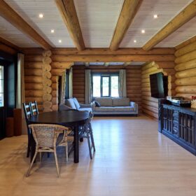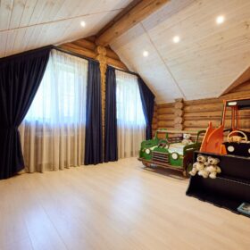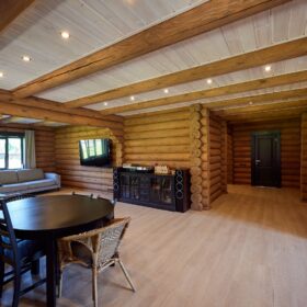 Во внутренней отделке комнат наши дизайнеры постарались подчеркнуть естественную красоту живого дерева. При оформлении использовались экологически чистые материалы.