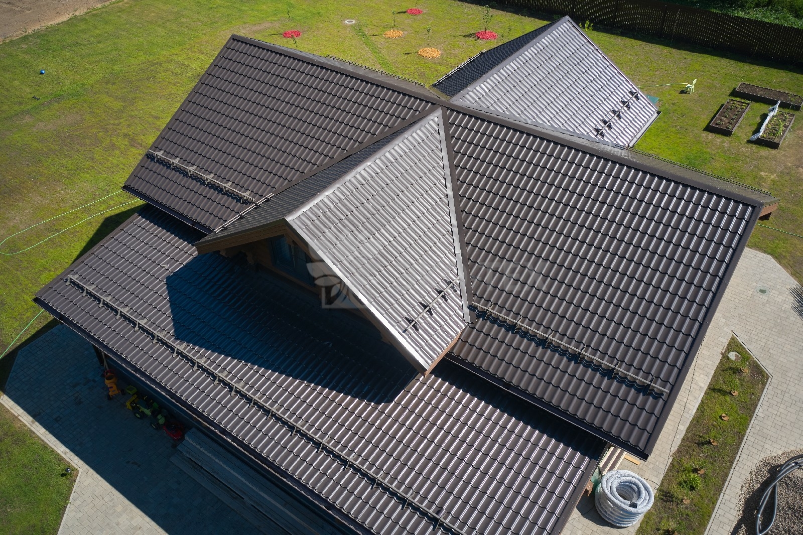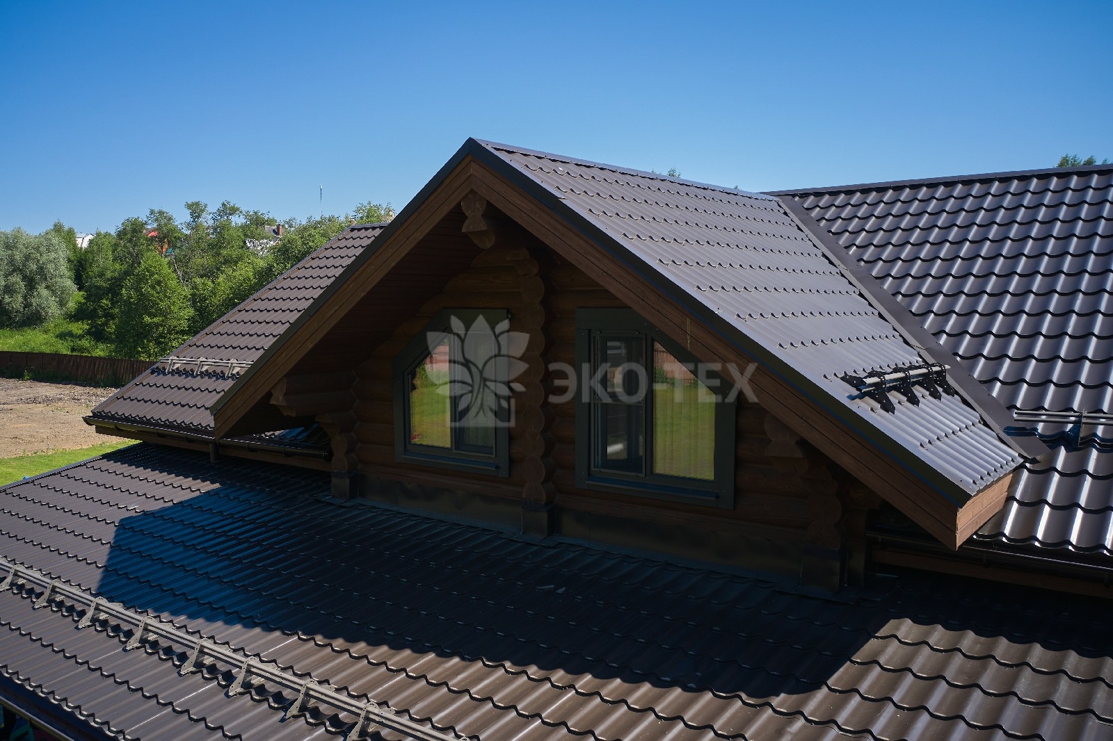 Крыша имеет сложную конфигурацию, поскольку дом обладает переменной этажностью. Современный кровельный материал, использованный нашими специалистами, не только надёжно защищают дом, но также обладает отличной шумоизоляцией, гарантирующей, что никакие ливни и ветра, не потревожат вас даже на верхнем этаже.
