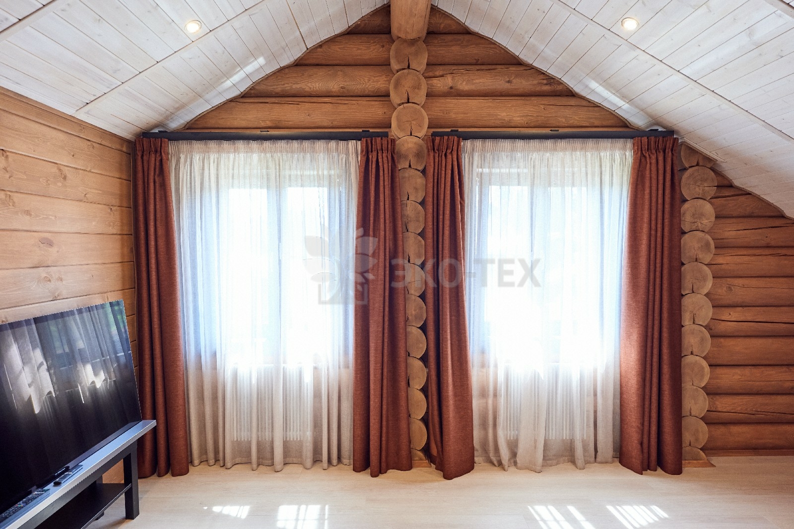 Во внутренней отделке комнат наши дизайнеры постарались подчеркнуть естественную красоту живого дерева. При оформлении использовались экологически чистые материалы.