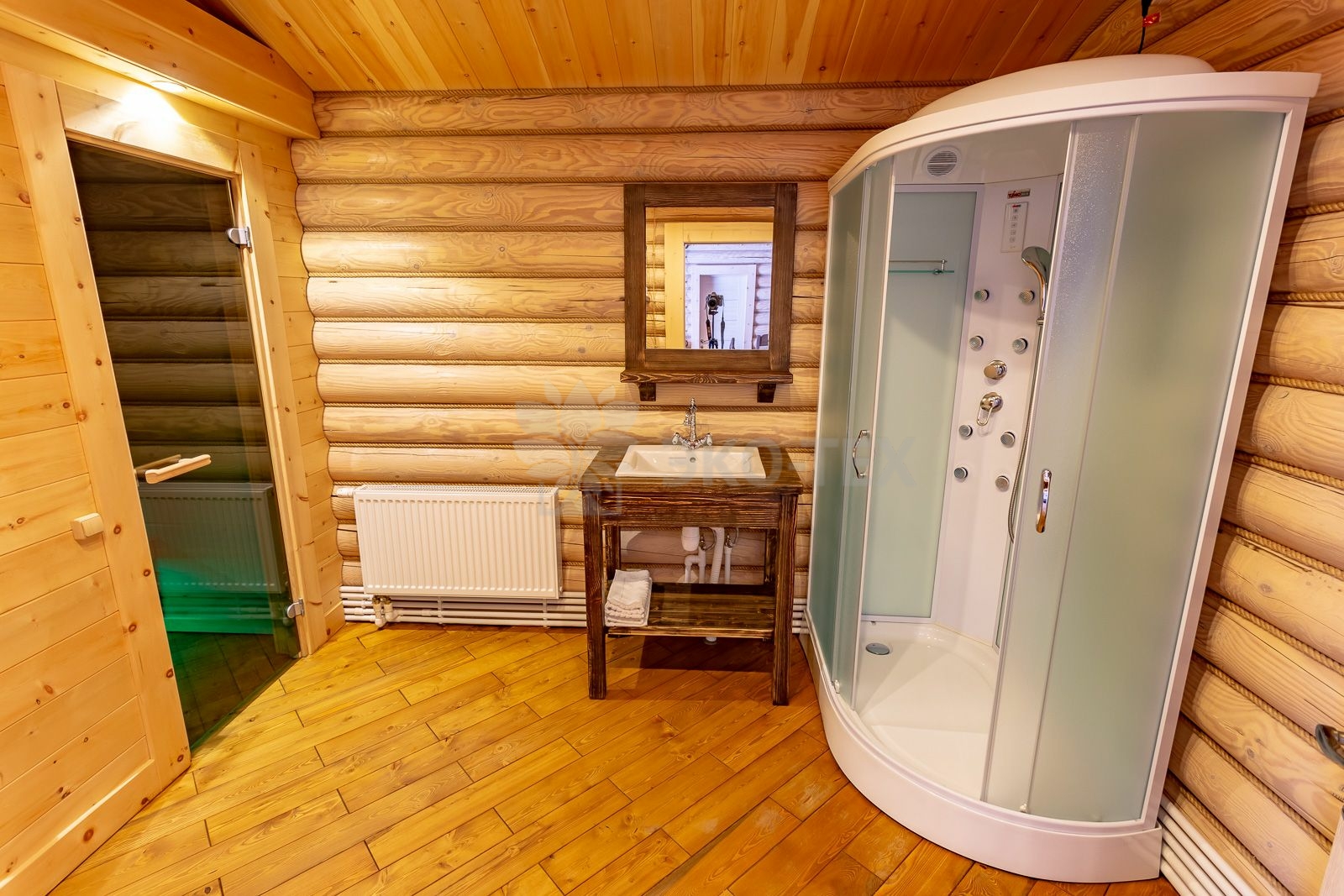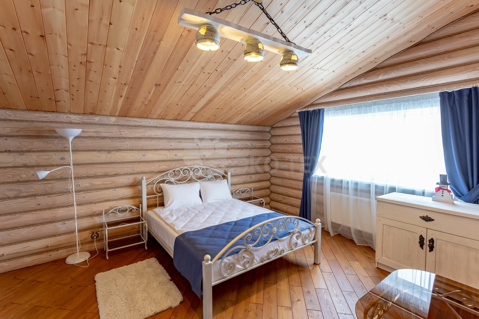 Дом одноэтажный площадью 136 кв.м. На территории дома 3 спальни, кухня-гостиная, прихожая. И по желанию владельца организована парная. Мансардный потолок в спальне смотрится необычно, при этом создает ощущение защищенности.