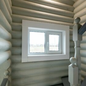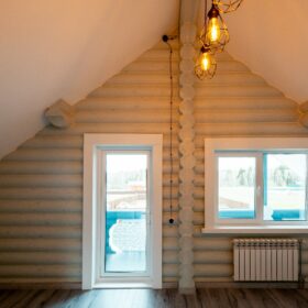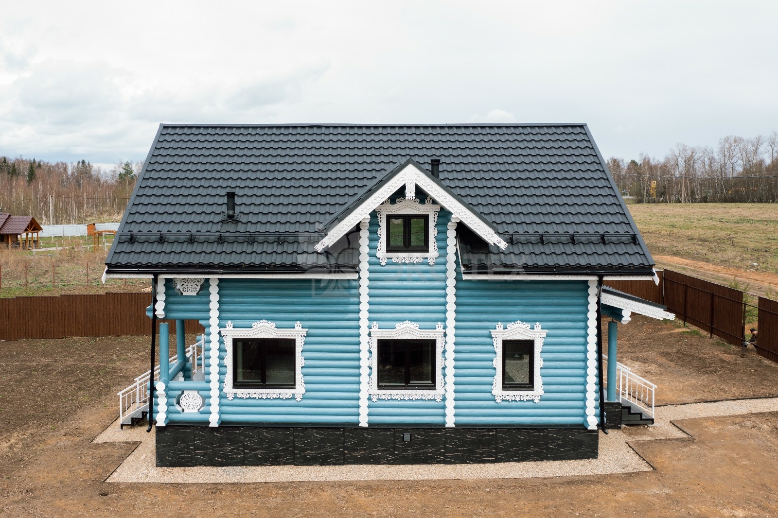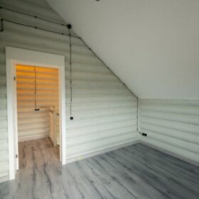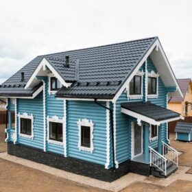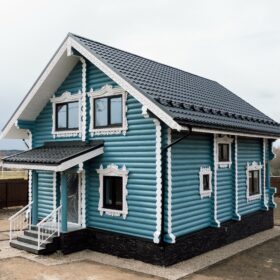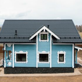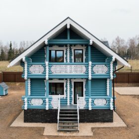 Аккуратный двухэтажный коттедж, из оцилиндрованного бревна, общей площадью 143 квадратных метра, влюбляет в себя с первого взгляда. Кажется, что идеальная форма сруба украшена ажурными сияющими кружевами, при этом, дом имеет неповторимый и современный облик.
