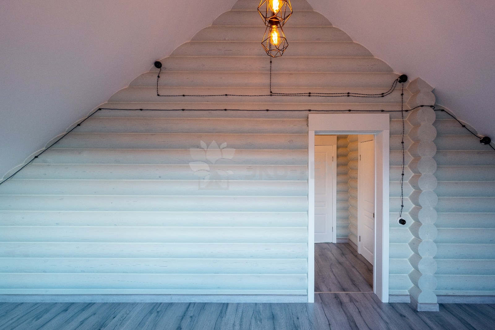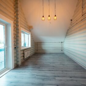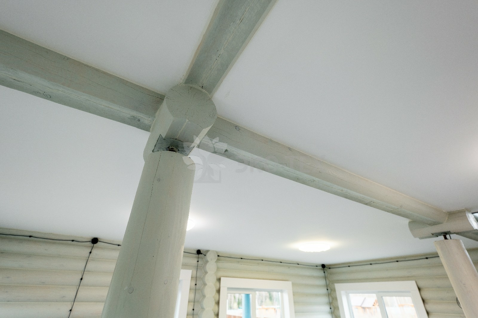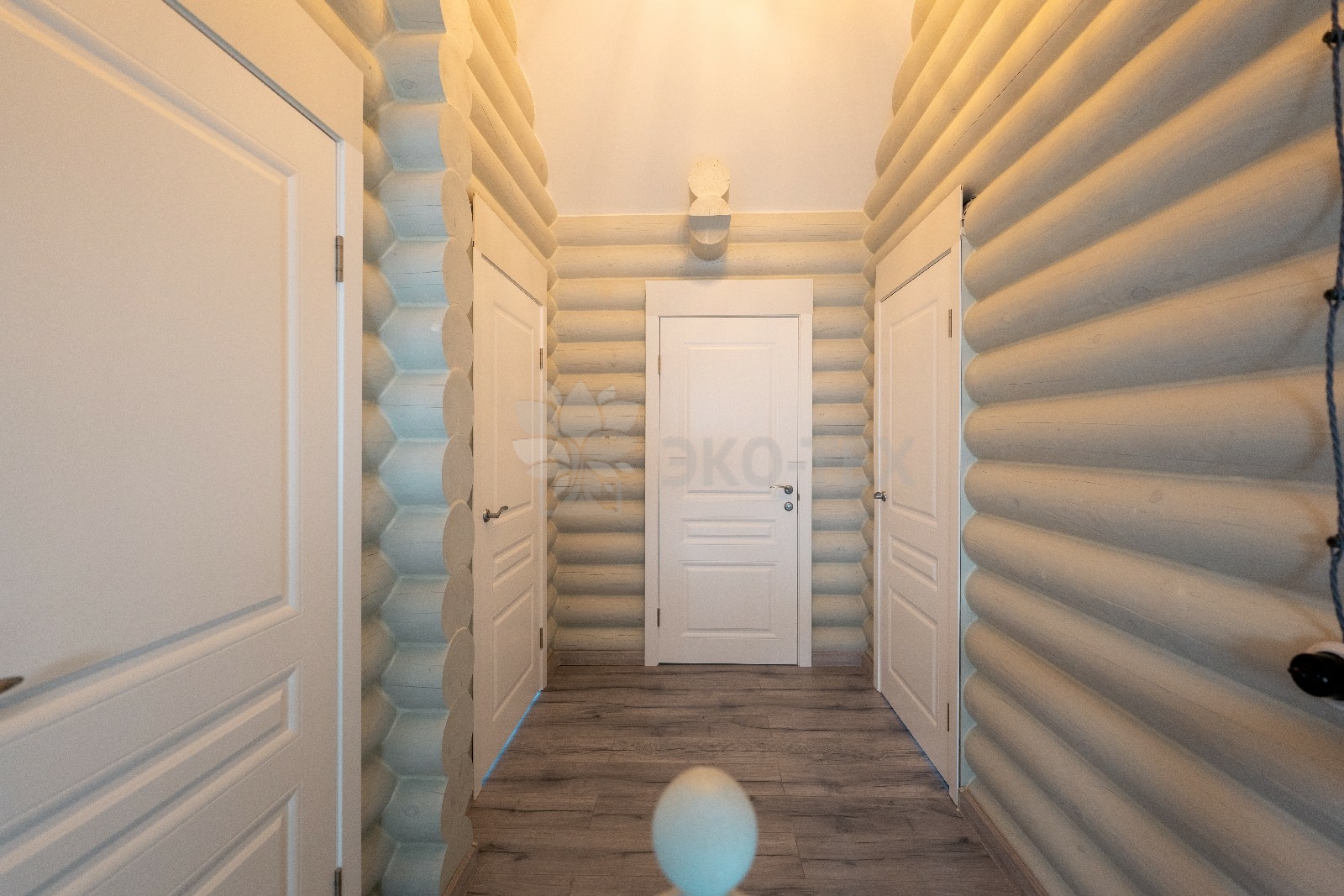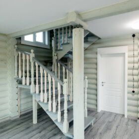 Коттедж построен из оцилиндрованных бревен, полученных при переработке архангельской сосны. Брёвна имеют идеальную калибровку, это достигается за счёт того, что мы, имея собственное производство, используем при обработке стволов высокоточные станки.