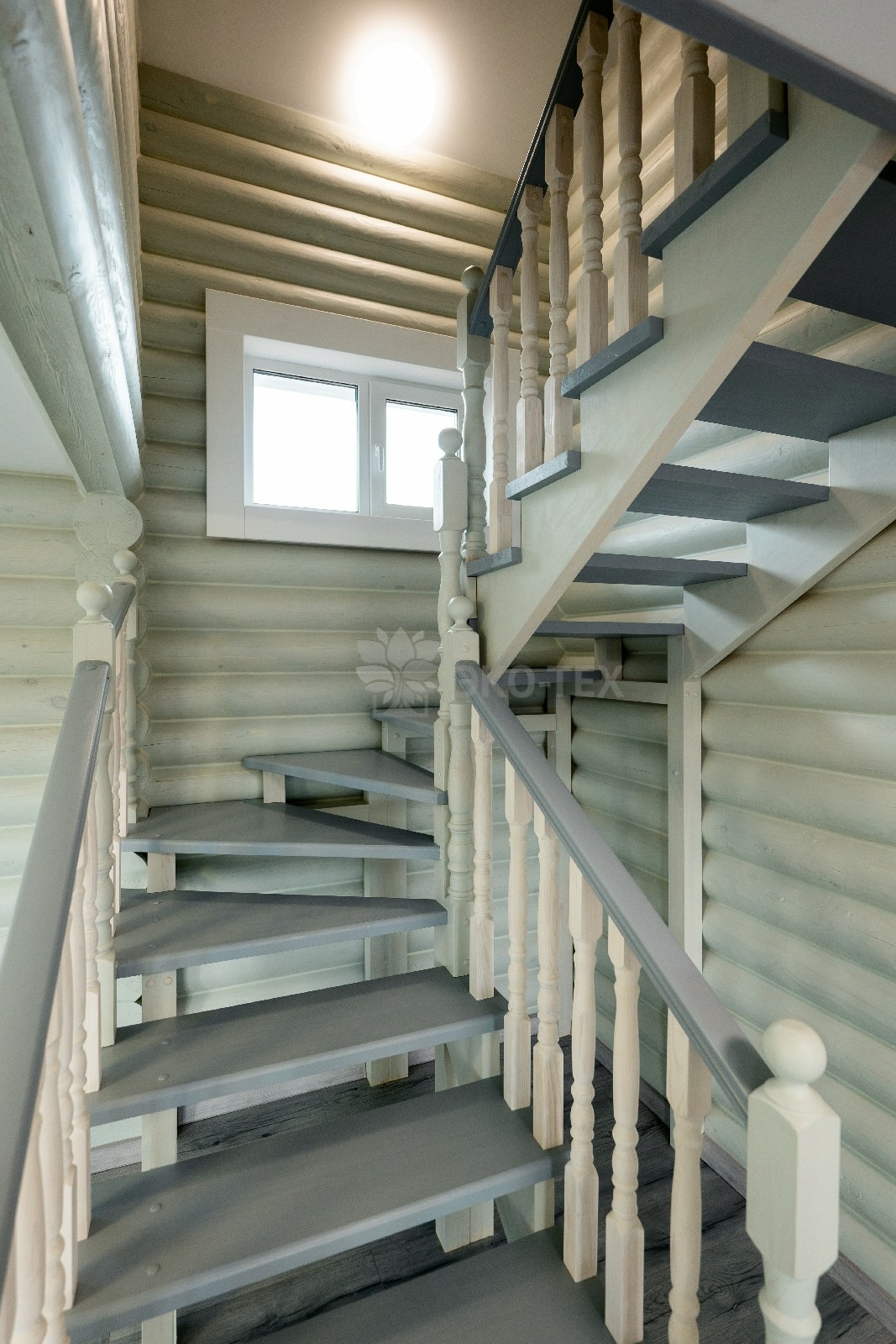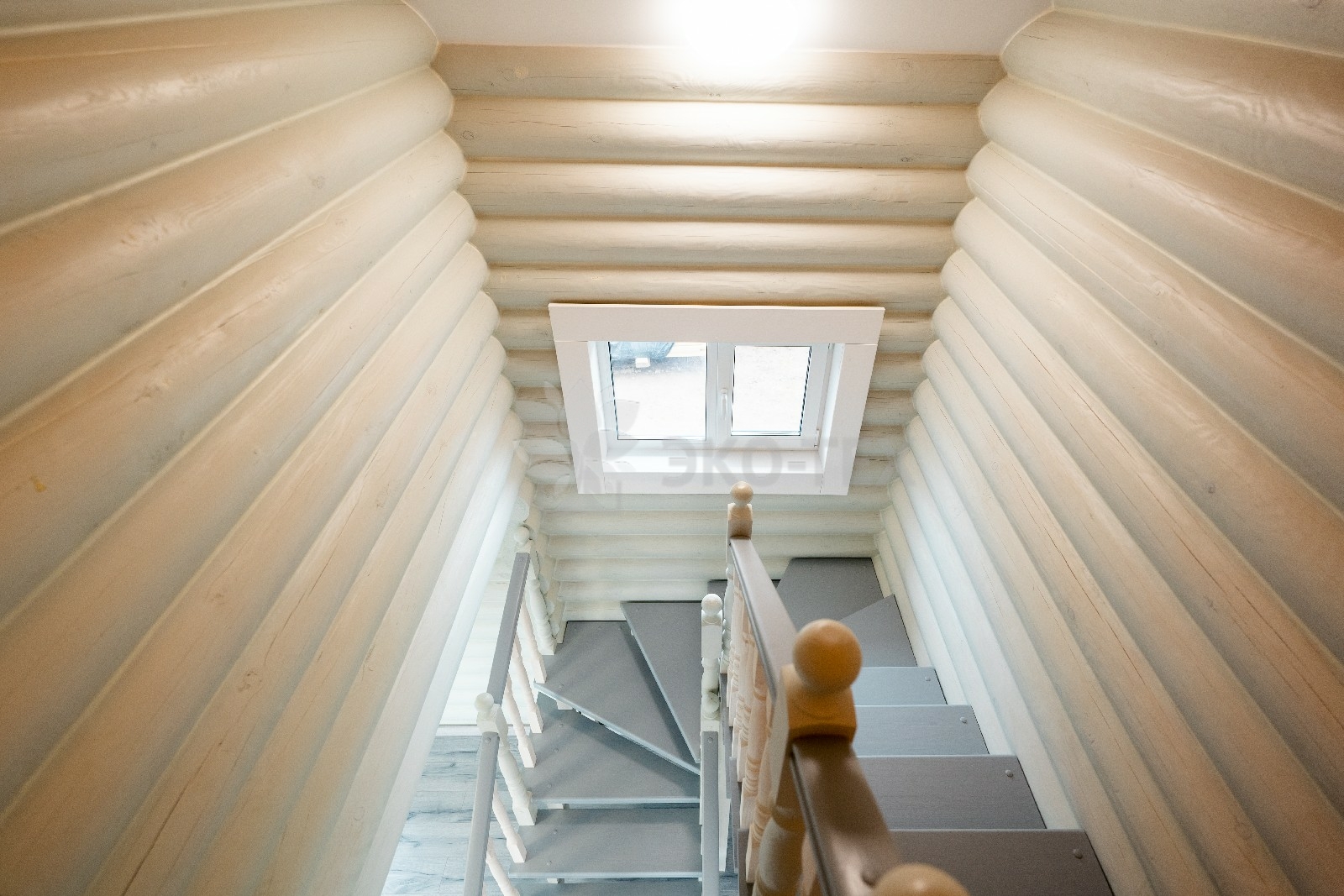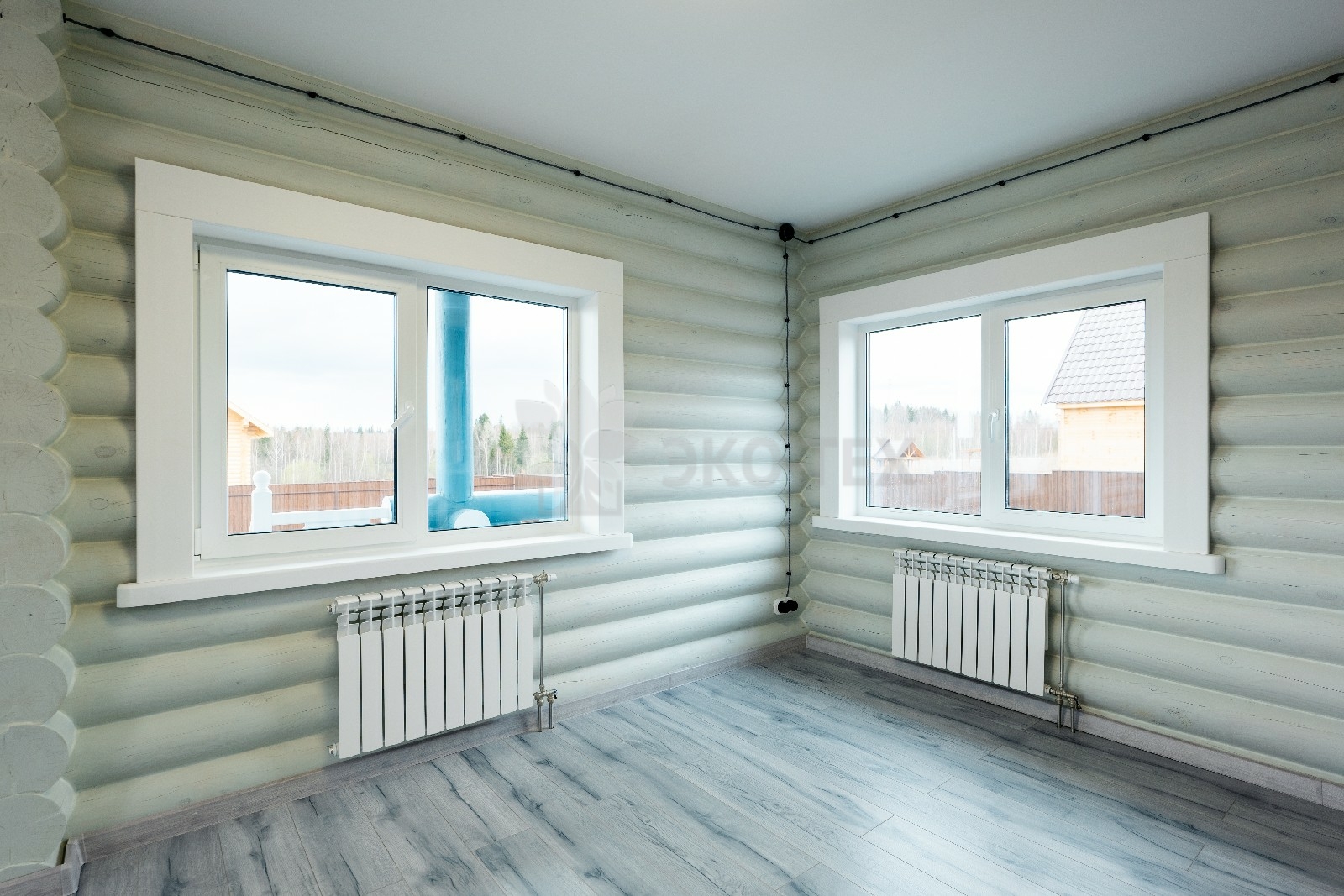 Коттедж построен из оцилиндрованных бревен, полученных при переработке архангельской сосны. Брёвна имеют идеальную калибровку, это достигается за счёт того, что мы, имея собственное производство, используем при обработке стволов высокоточные станки.