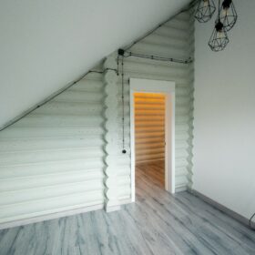 Удобная, широкая лестница, ведущая на второй этаж, выходит в холл, который объединяет три, разные по площади, комнаты. Мансардный этаж всегда несёт элемент необычности, который связан с его нестандартной геометрией. Здесь может располагаться библиотека, детская или рабочий кабинет. На втором этаже имеется собственный санузел.