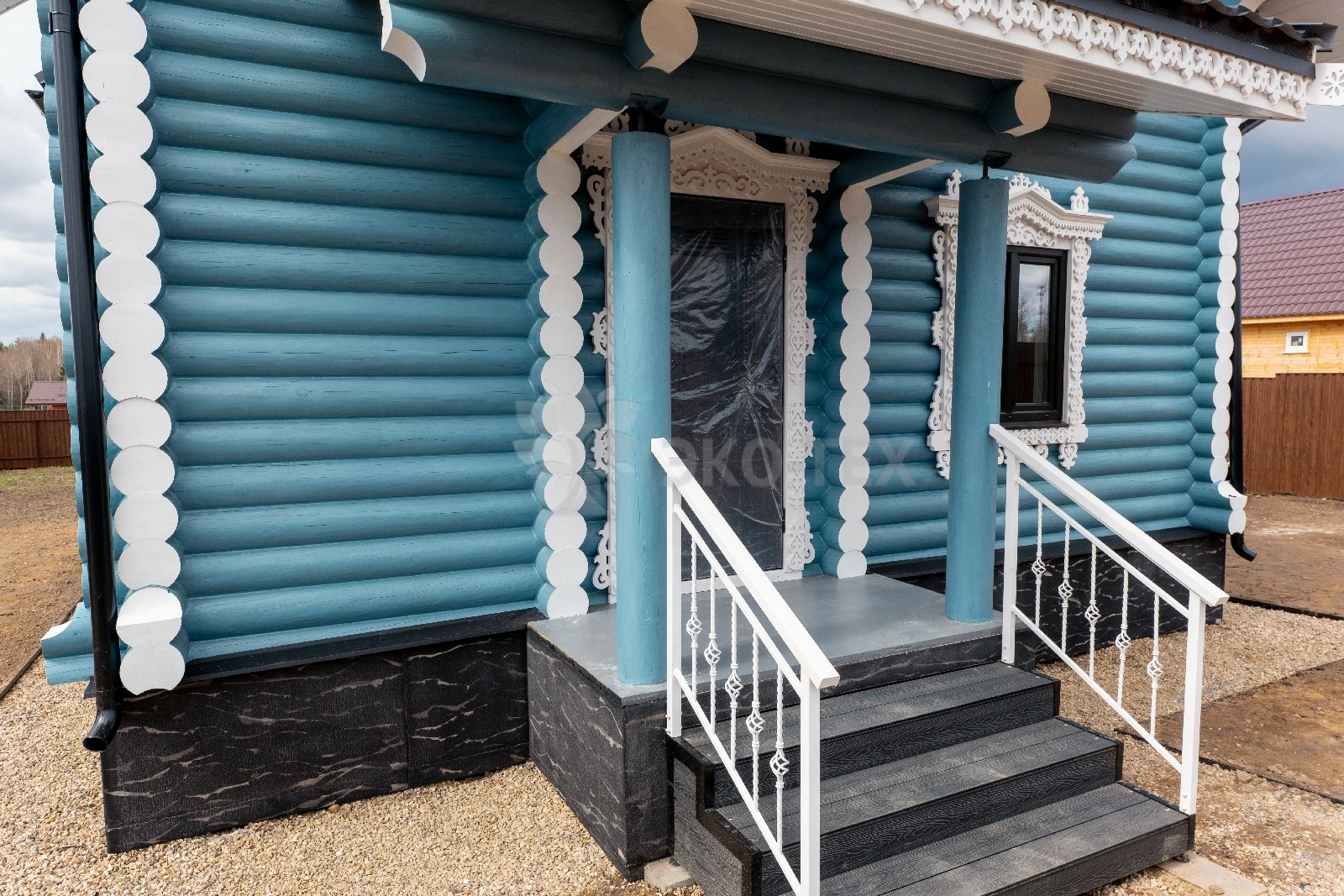 Фото дом из оцилиндрованного бревна по проекту фьорд
