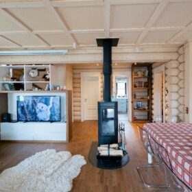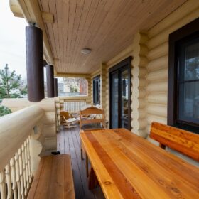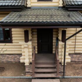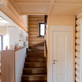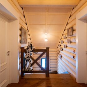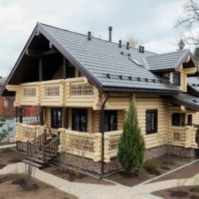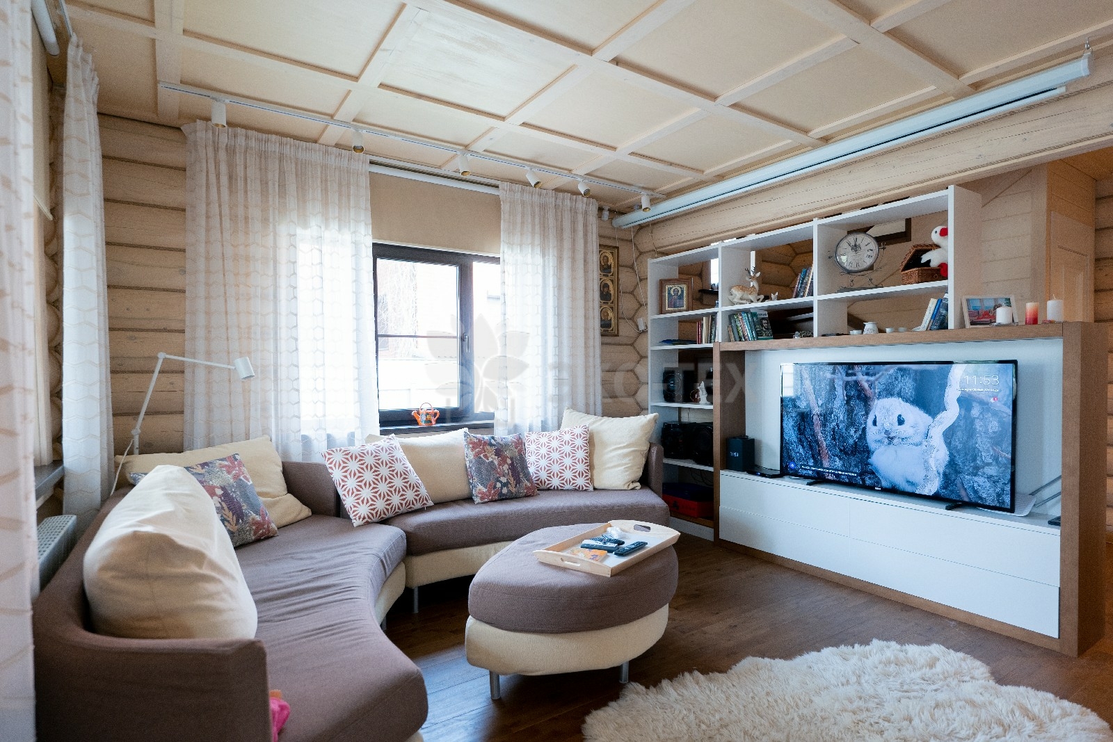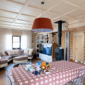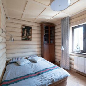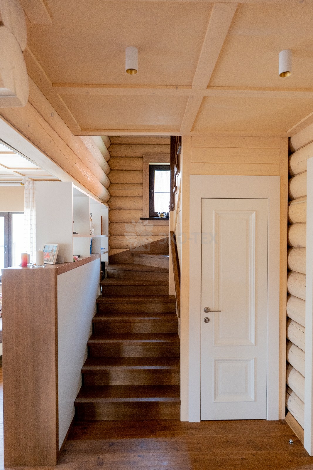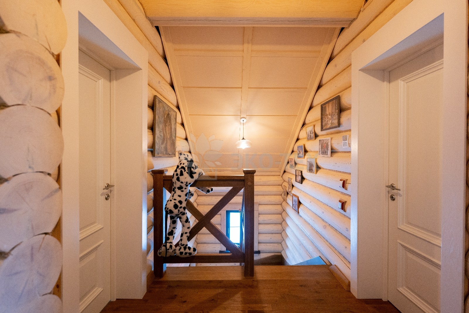 Современная внутренняя отделка выполнена нашими дизайнерами по авторским проектам, оцилиндрованное бревно высочайшего качества мы изготавливаем на наших производственной площадке в Архангельской области.