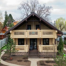 Дом из оцилиндрованного бревна по проекту «Звенигород» продолжает традиции наших мастеров.