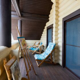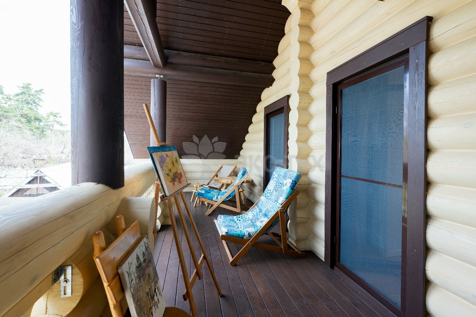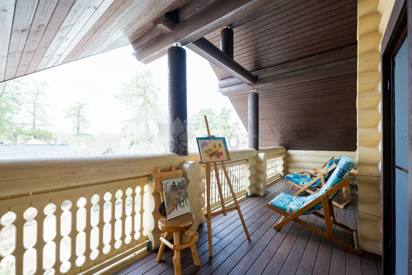Балкон является, поистине, украшением дома — его площадь сопоставима с размерами комнаты и позволяет разместиться там всем желающим.