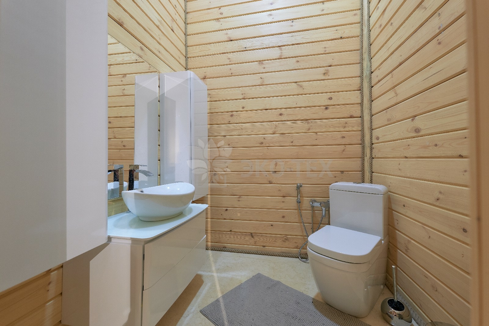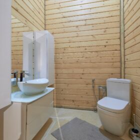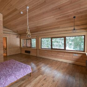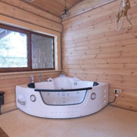 На верхнем этаже находятся три спальни, джакузи, два санузла. Особую «изюминку» интерьера представляет собой балкон – галерея, которая является, поистине, украшением дома.