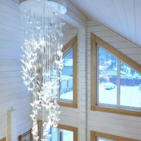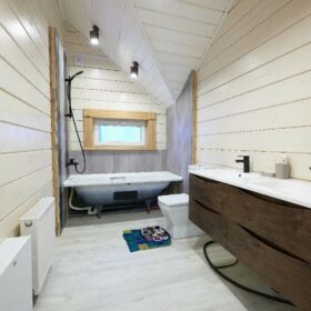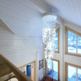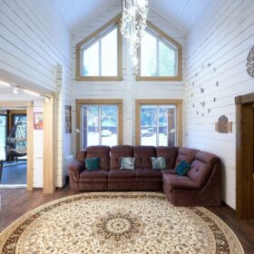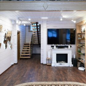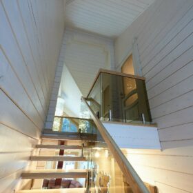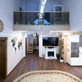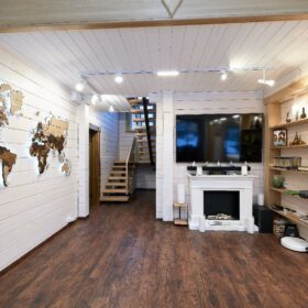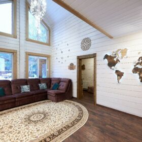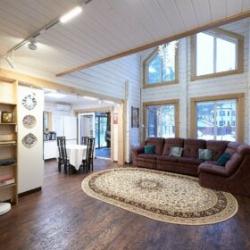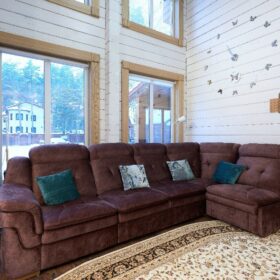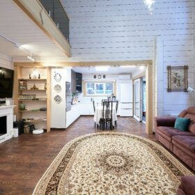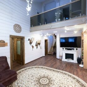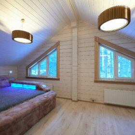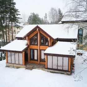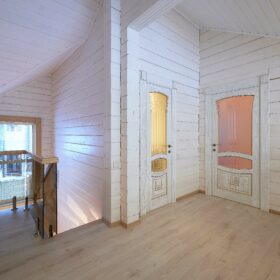В вашем сердце займет достойное место двухэтажный терем из самого современного и экологичного строительного материала — клеёного бруса, который раскинулся почти на двести квадратных метров. Уникальный микроклимат, поддерживаемый деревом, в сочетании с современной изысканной отделкой, порадуют вас и ваших близких.