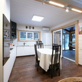 Дом построен из клеёного бруса, качество которого соответствует самым высоким стандартам. Это утверждение основано на том, что на протяжении многих лет мы являемся владельцами собственного производства, на котором осуществляется полный цикл деревообработки — от заготовки леса до формирования готовых домокомплектов.