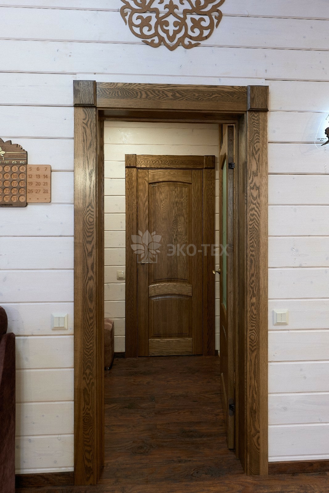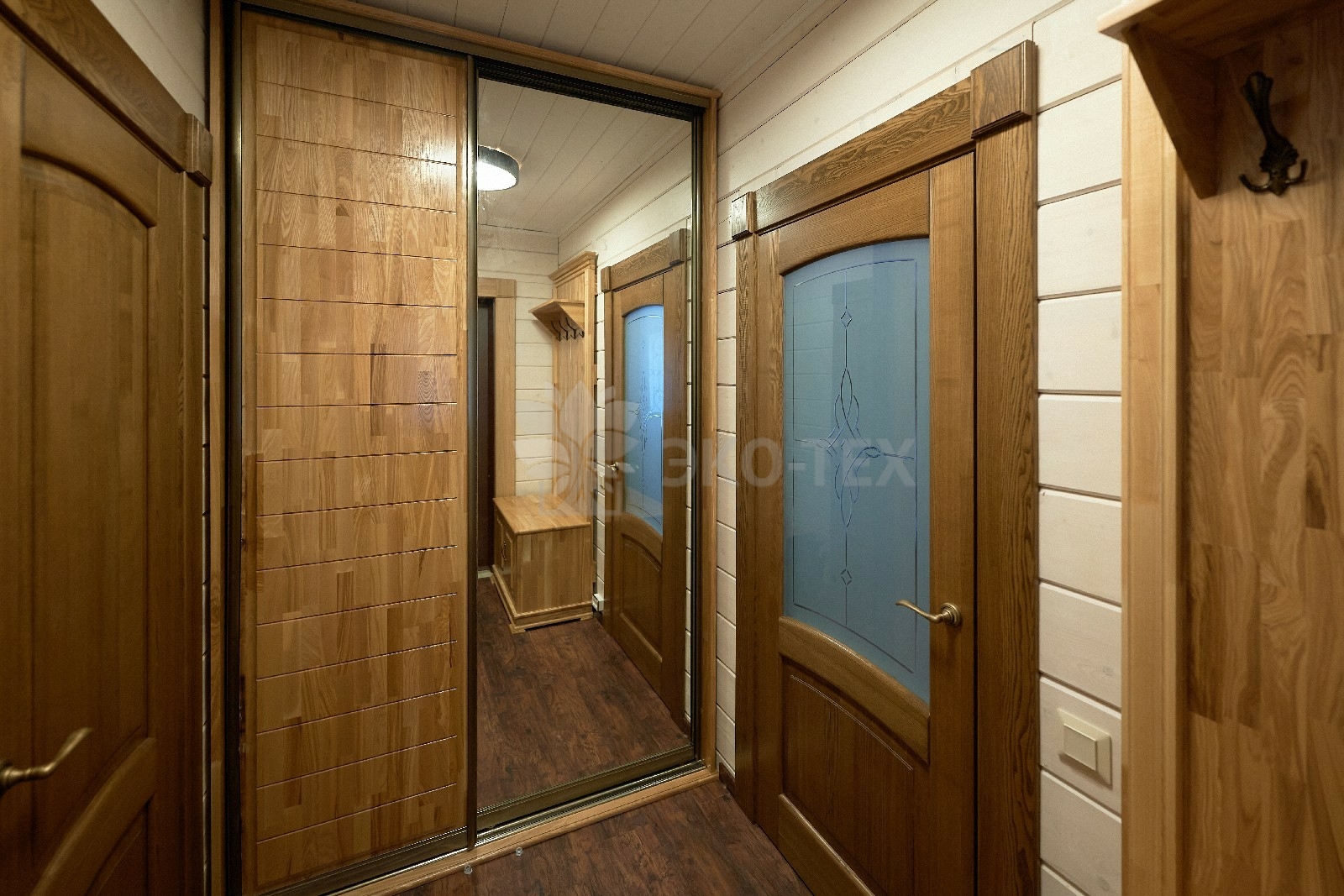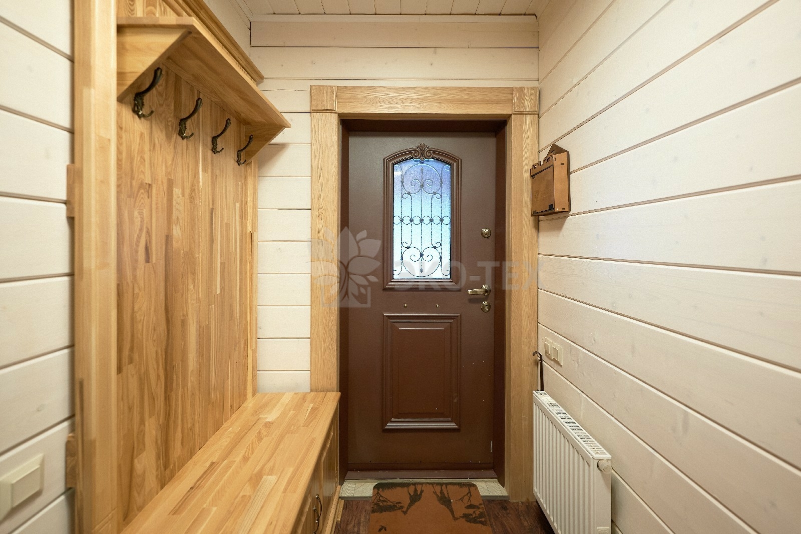 С основного крыльца мы попадаем в прихожую, здесь же расположена гардеробная, что очень удобно, особенно в холодное время года.