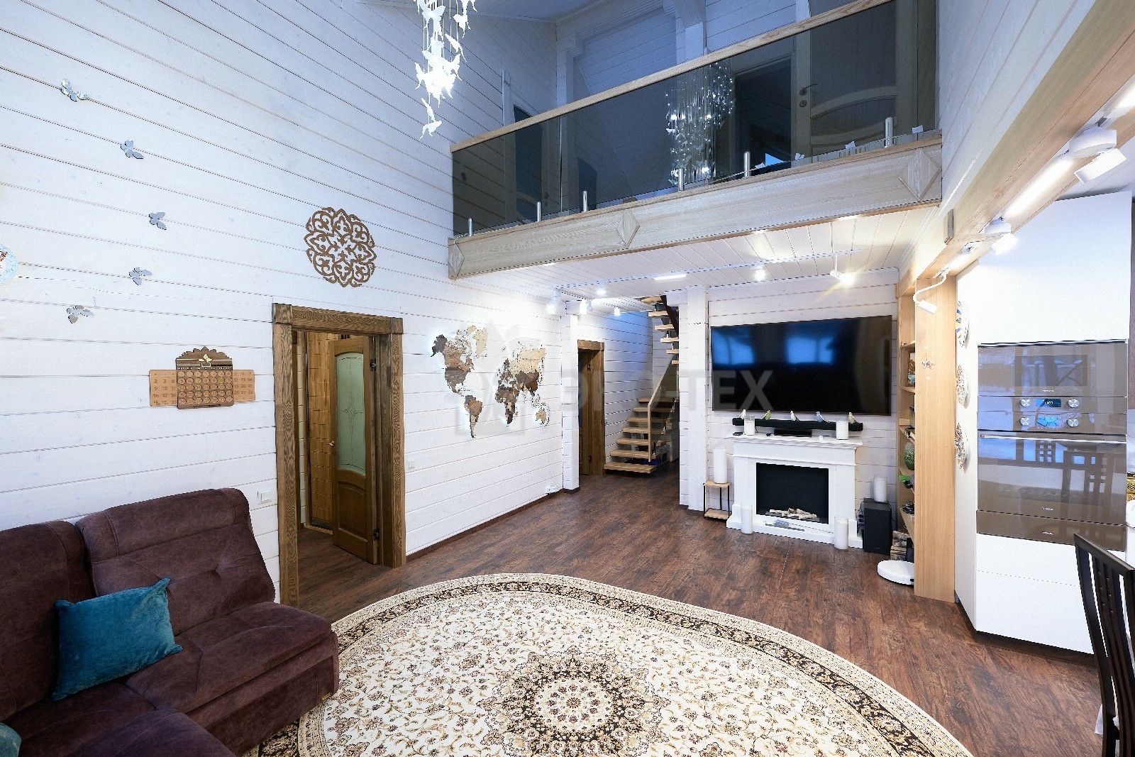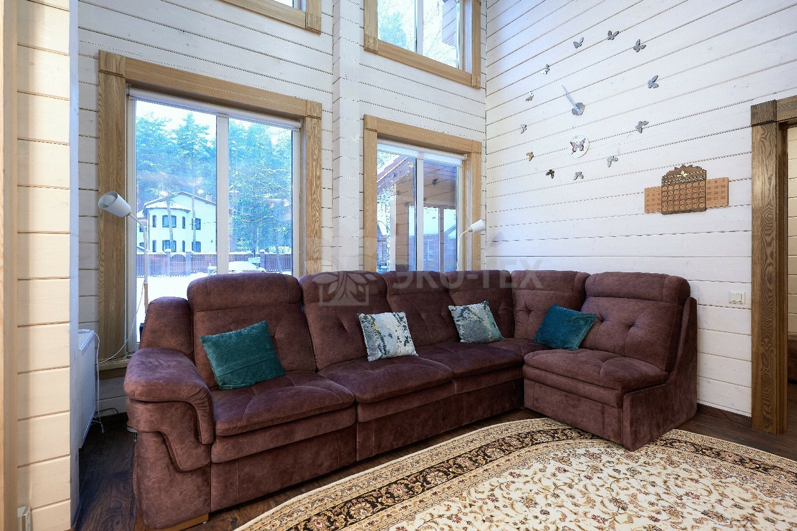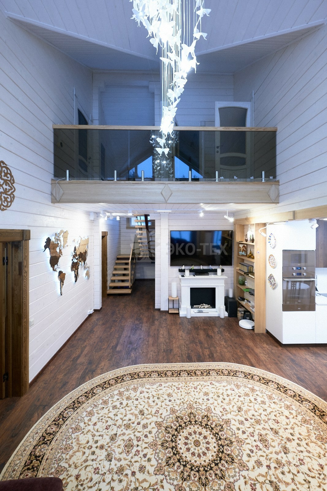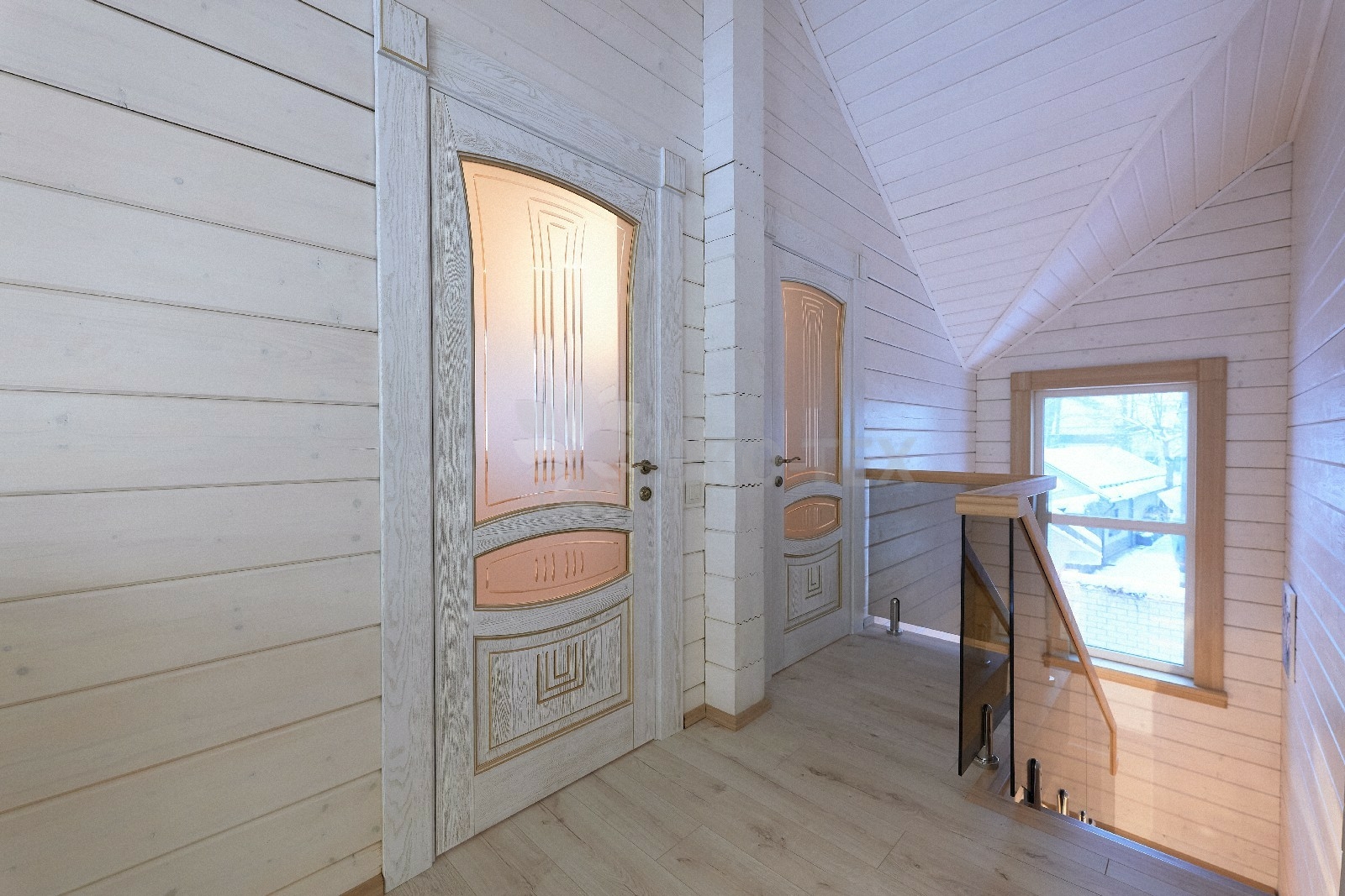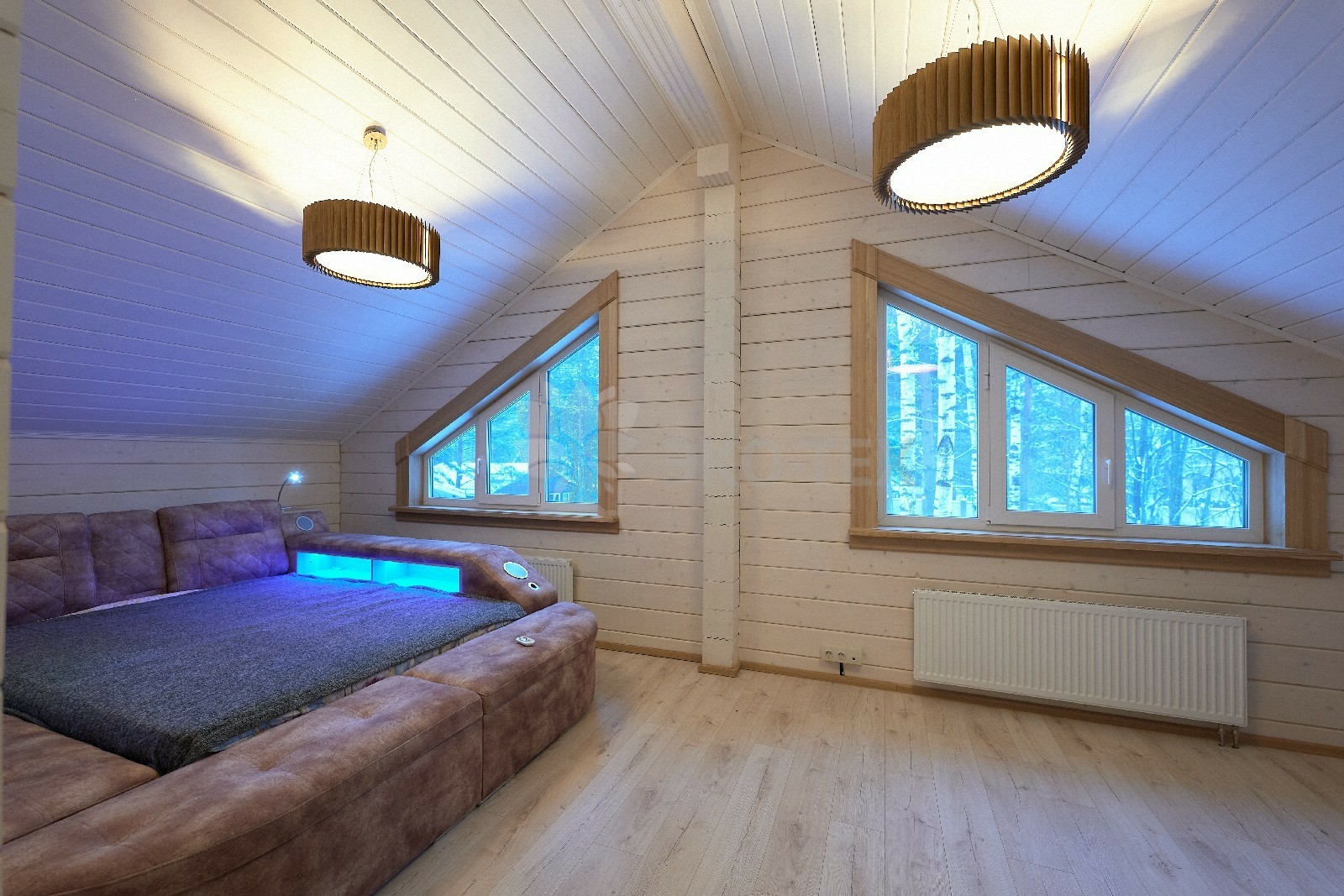 В вашем сердце займет достойное место двухэтажный терем из самого современного и экологичного строительного материала — клеёного бруса, который раскинулся почти на двести квадратных метров. Уникальный микроклимат, поддерживаемый деревом, в сочетании с современной изысканной отделкой, порадуют вас и ваших близких.