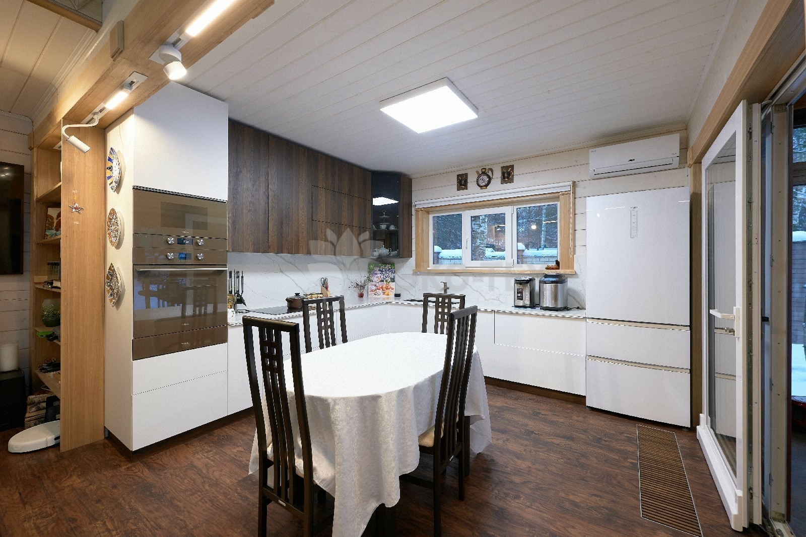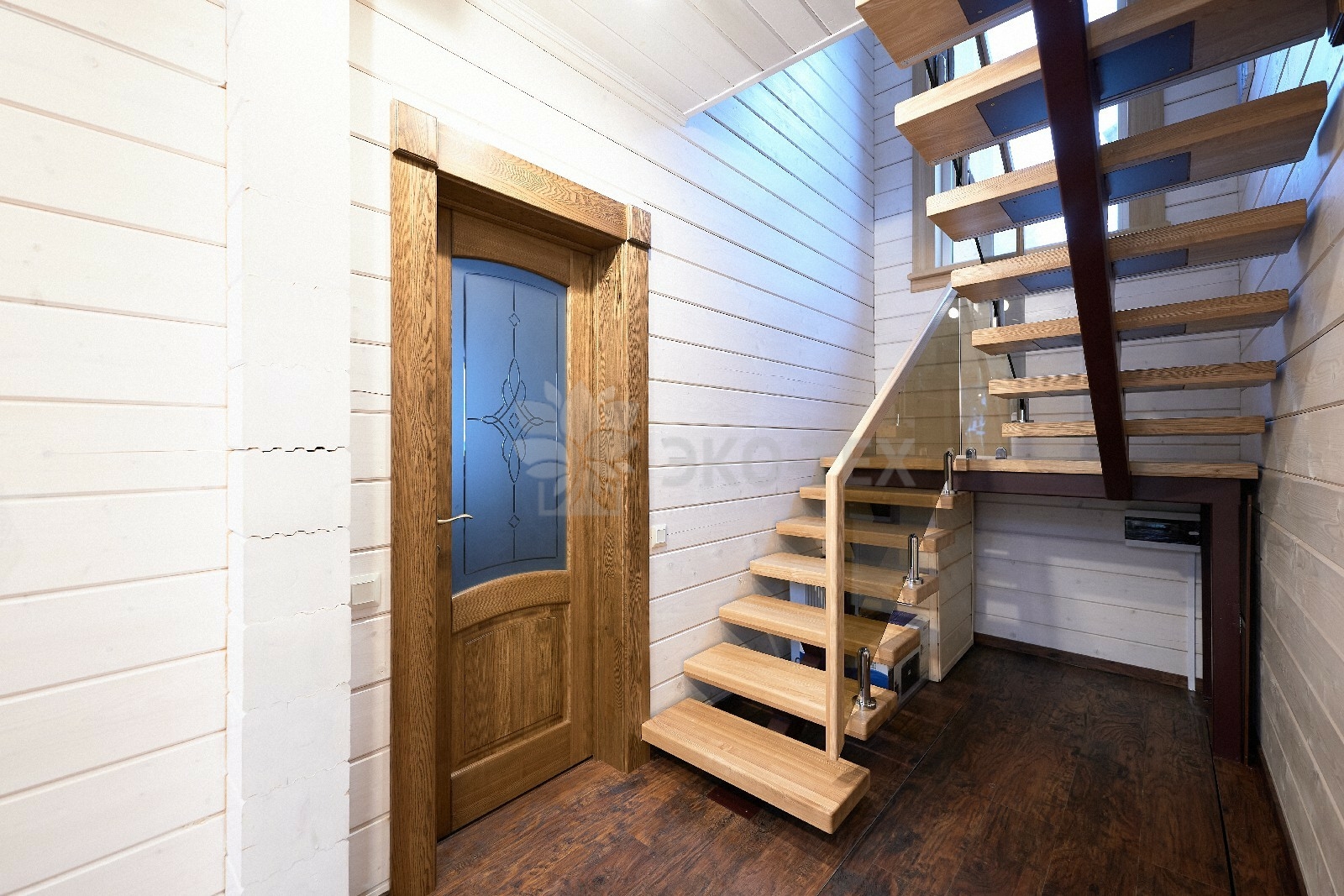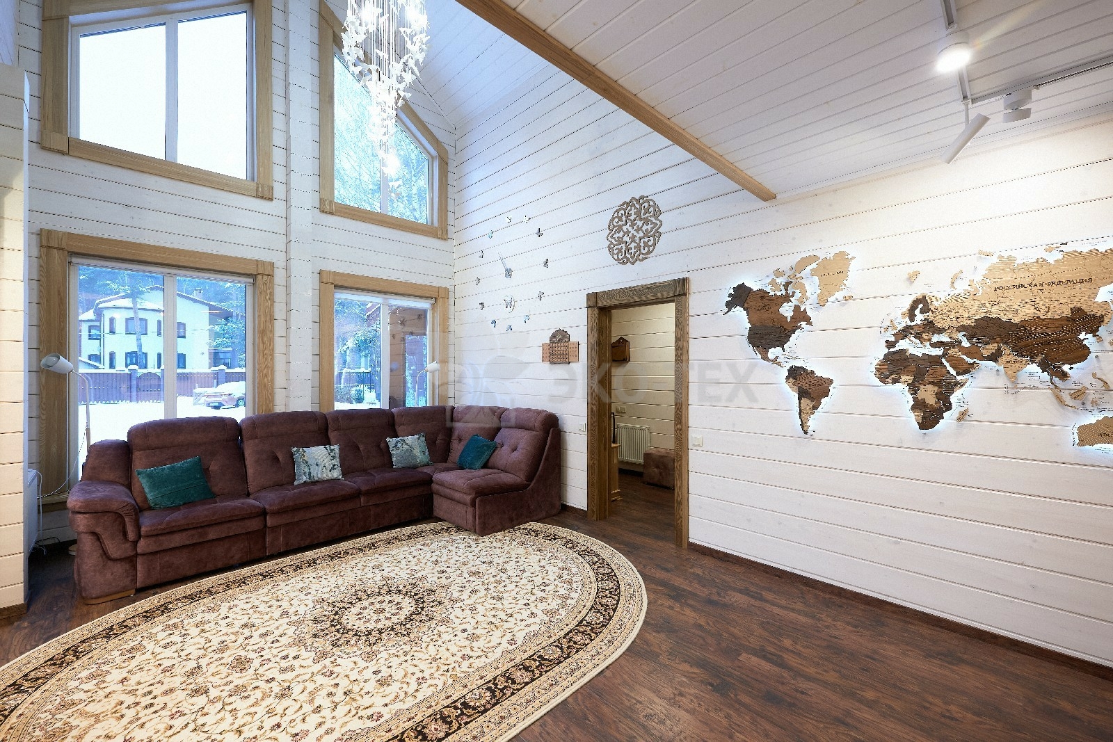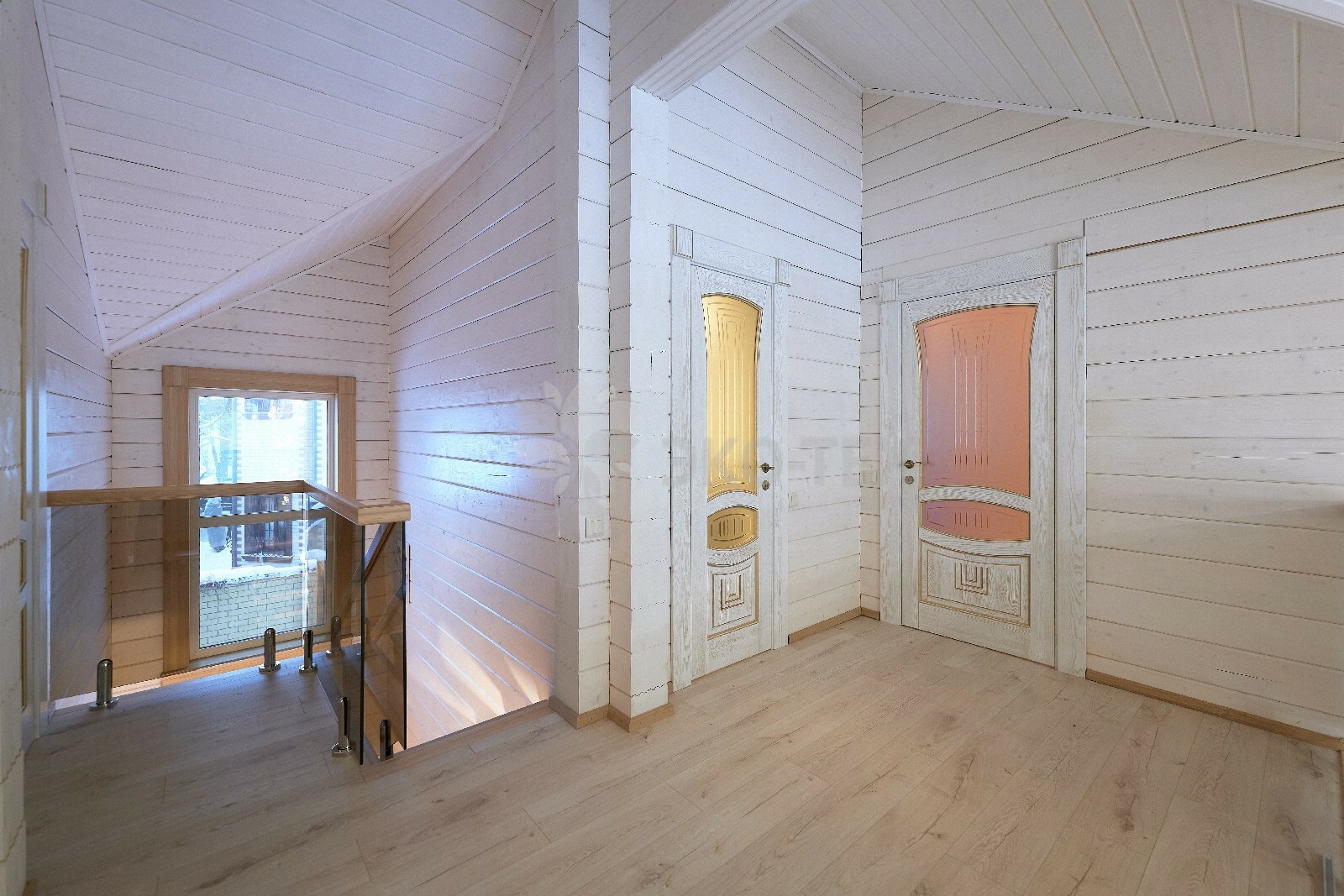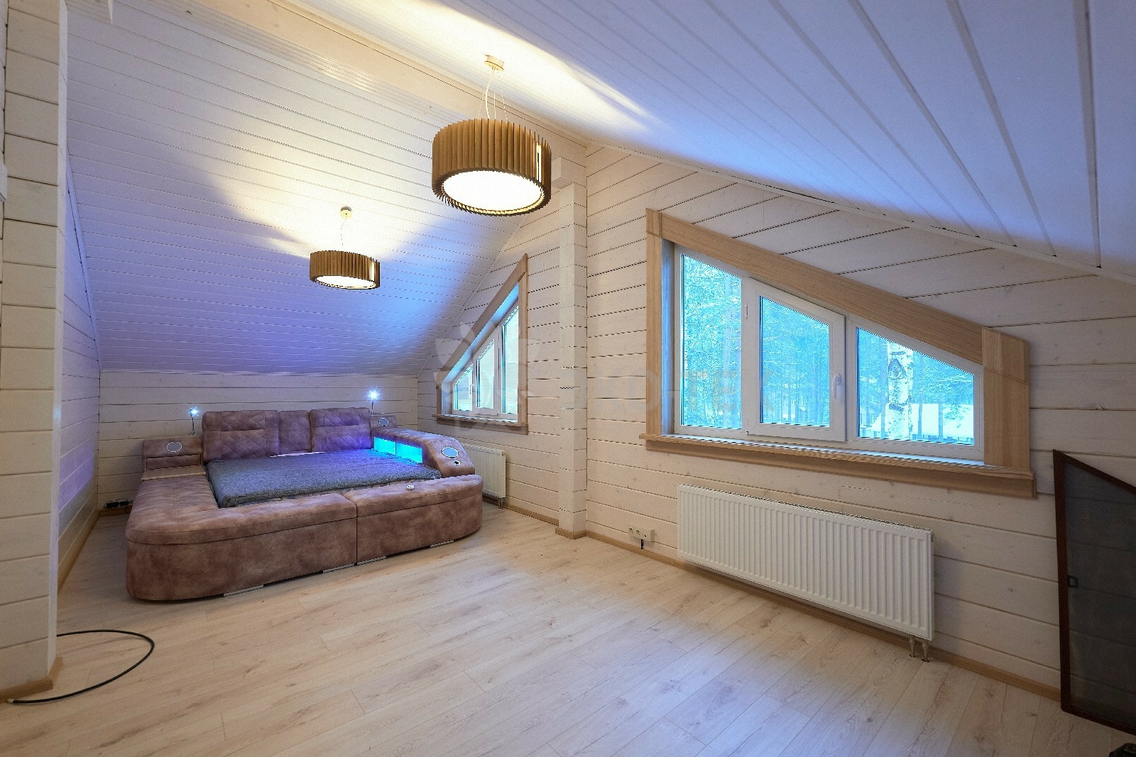 В вашем сердце займет достойное место двухэтажный терем из самого современного и экологичного строительного материала — клеёного бруса, который раскинулся почти на двести квадратных метров. Уникальный микроклимат, поддерживаемый деревом, в сочетании с современной изысканной отделкой, порадуют вас и ваших близких.
