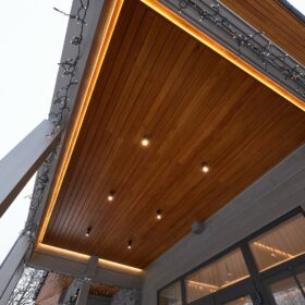 Дополнительная мягкая подсветка делает комфортным пребывание здесь в любое время суток. Наверняка, летняя кухня станет ещё одним вашим любимым уголком.