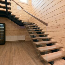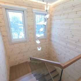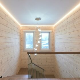 Продуманная планировка технических помещений, гардеробной и прихожей обеспечивают удобство и функциональность. Помещения  объединяются общим холлом, лестница  из которого ведёт на второй этаж. Лестница имеет несколько маршей, за счёт этого её уклон минимален и комфортен.