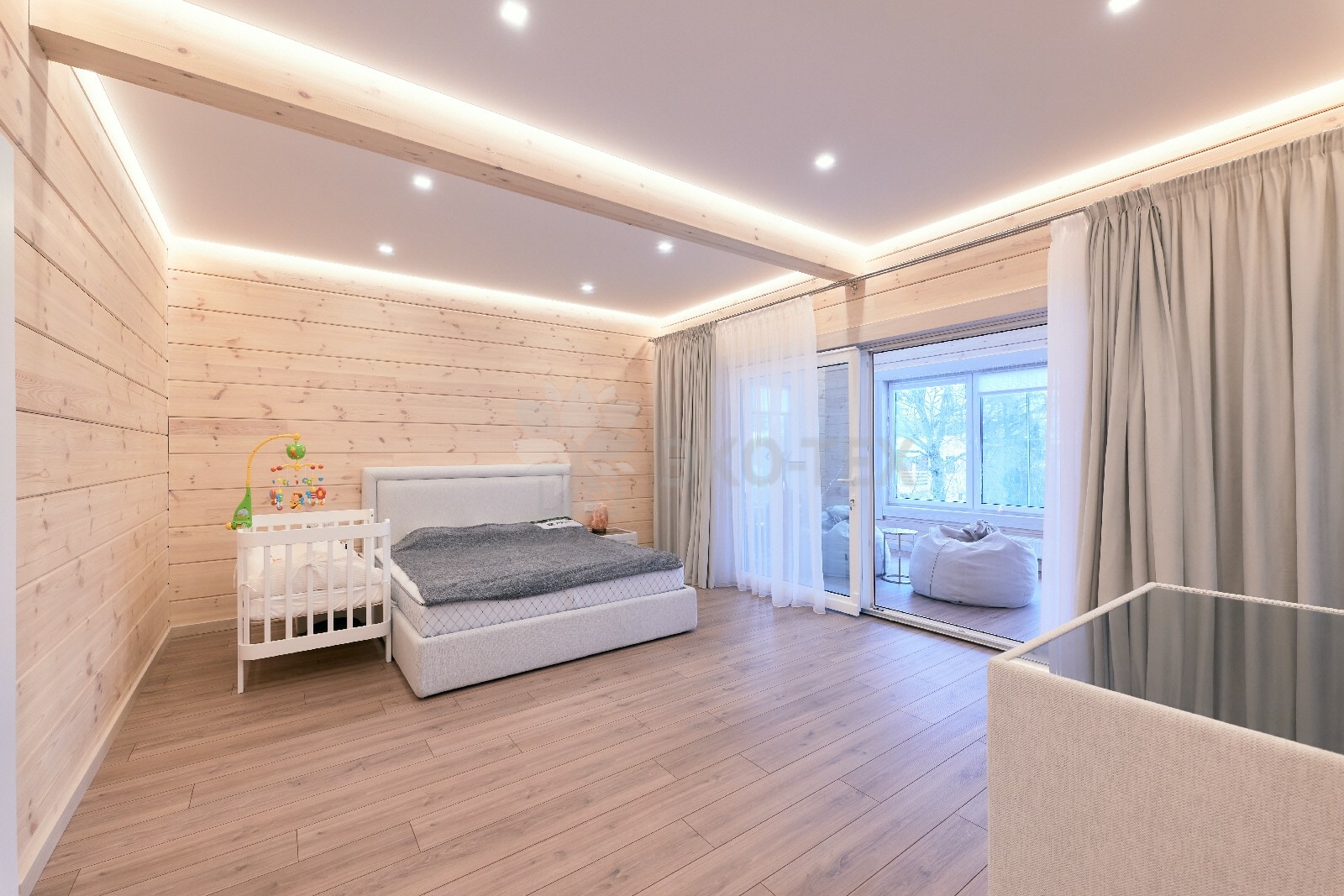 На втором этаже нас ждут просторные комнаты различной площади с собственными гардеробными и два  отдельных санузла.