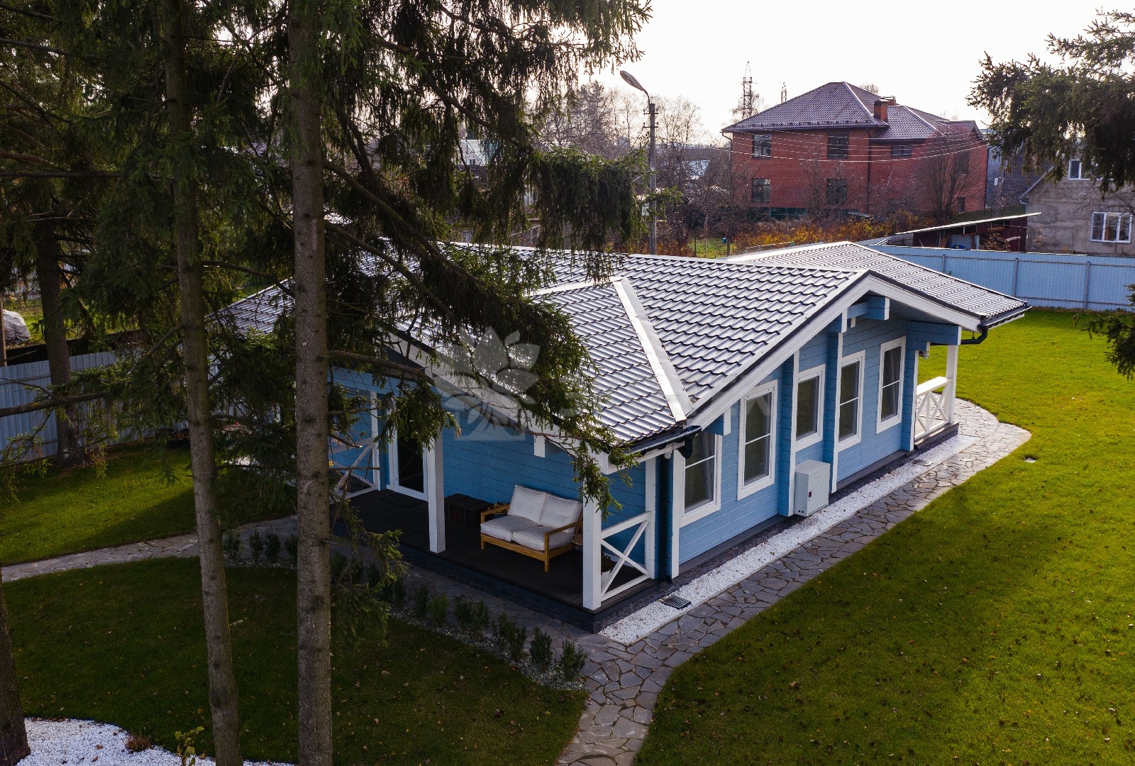 Одноэтажный уютный дом, построенный по проекту Первомайск, из клеёного бруса легко может стать воплощением подобной мечты в реальность.