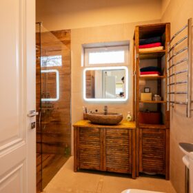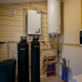 Рядом с гостиной — кухней располагаются две комнаты отдыха – спальни, которые объединяются с общим пространством холлом. Здесь же, поблизости, расположены подсобные помещения и санузел. Роль подсобных помещений в частном доме особая, поскольку здесь располагается газовый котел и система водоподготовки – основные системы жизнеобеспечения.