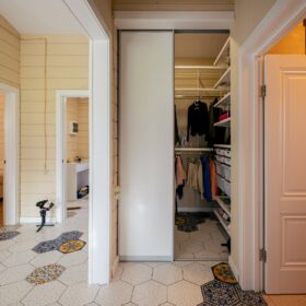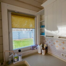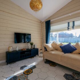 Общая площадь дома составляет 93 квадратных метра, при этом в нём достаточно много света за счет высоких потолков и больших окон.